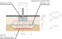 Pomocou výstužných a stabilizačných monolitických geomreží je možné postaviť špeciálnu geobunkovú štruktúru umožňujúcu založenie stavby na veľmi neúnosnej vrstve.