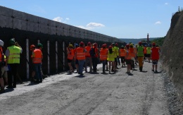 Exkurzia na stavbu pilotného projektu nového oporného systému GeoWall Panel na modernizovanej trati Rokycany – Plzeň, 25. 04. 2017.