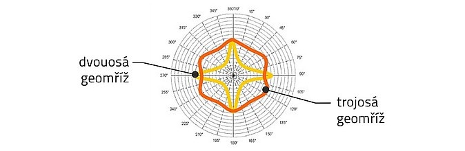 Vzhľadom na štvorcový tvar oka bola tuhosť geomreže sústredená do dvoch smerov, pozdĺžneho a priečneho. Polárny diagram tuhosti dvojosovej geomreže ukazuje, ako je jej tuhosť silne viazaná na smer rebier – pozri nasledujúci obrázok. Tento diagram vyvolával otázku: „Ako veľmi tento tvar diagramu ovplyvňuje účinnosť pri zaťažení od dopravy a či je možné tento jav testovať?“