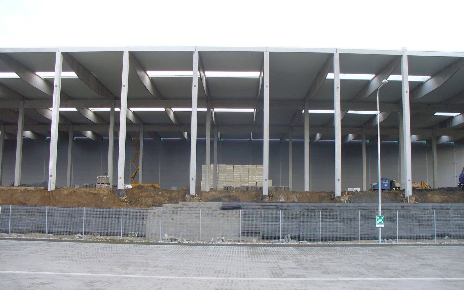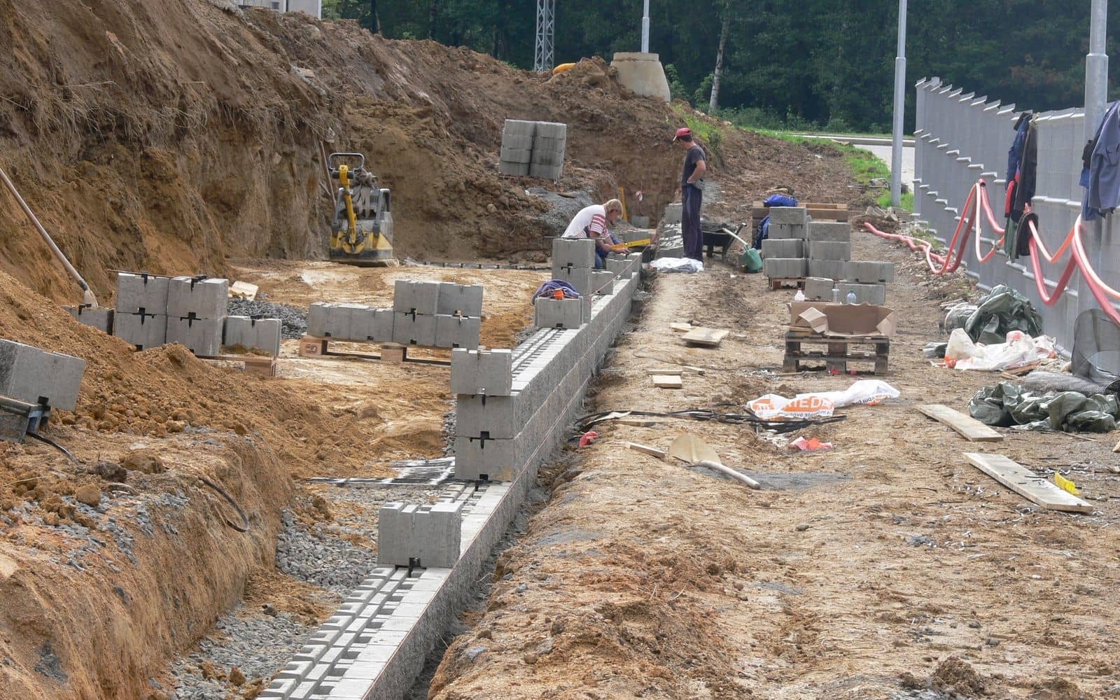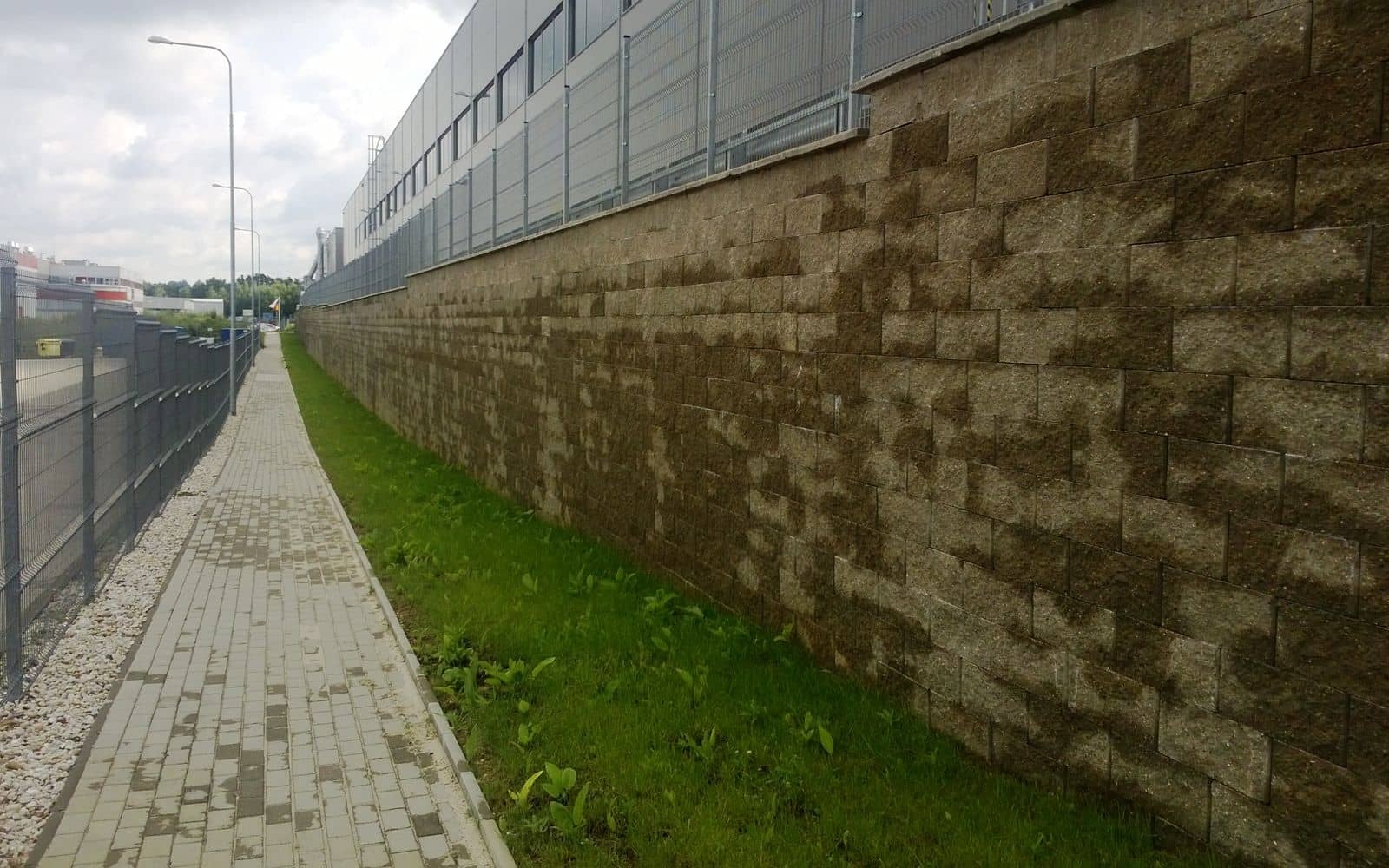 Navrhnutá vystužená oporná konštrukcia pomohla vyriešiť výškový rozdiel medzi projektovanou komunikáciou a novovybudovanou halou.