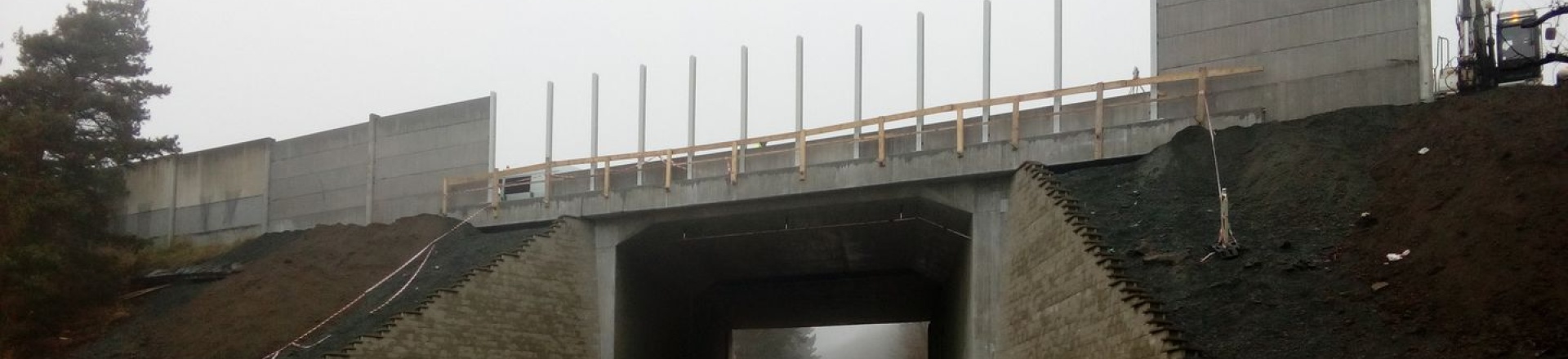 Novo budované mostné krídla sú vytvorené zo systému vystuženej zeminy GeoWall Block. Jedná sa o systémovú konštrukciu s betónovými tvarovkami v líci, ktoré sú prepojené pomocou špeciálnych spojovacích prvkov. Stabilitu a funkčnosť celej konštrukcie zaisťujú monolitické geomreže z vysokohustotného polyetylénu Tensar RE500. Lícne prvky zadržiavajú zeminu zásypu v čele konštrukcie.