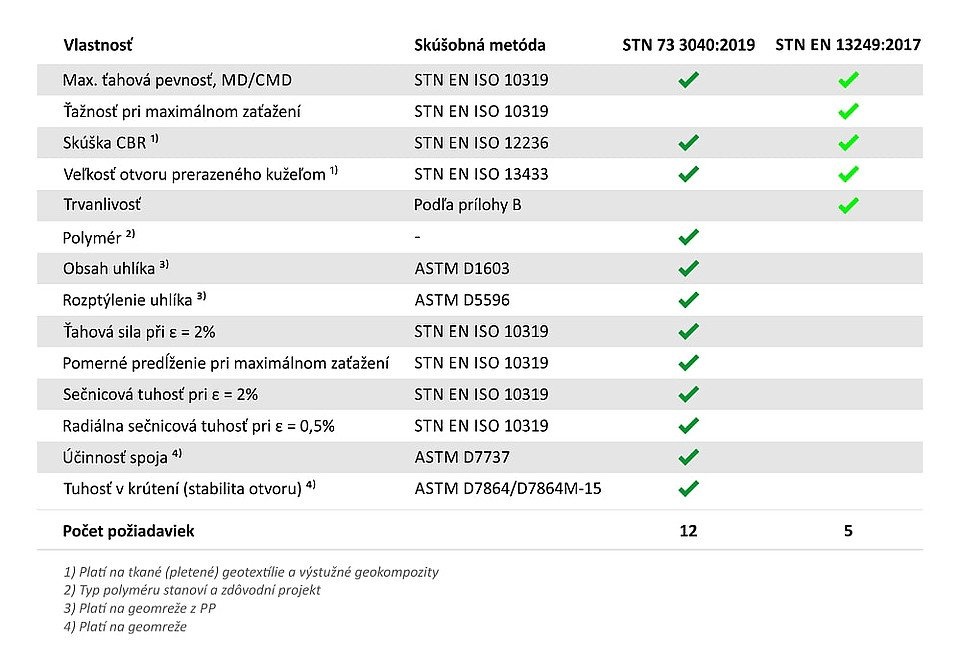 Norma STN 73 3040 navyše vo výsledku kladie na geosyntetiká aj ich výrobcov a distribútorov prehnané kvalitatívne požiadavky, ktoré je veľmi zložité doložiť a skontrolovať. Ide vysoko nad rámec medzinárodného európskeho konsenzu, pri ktorom je oprávnené predpokladať, že je postavený na technicky opodstatnených vlastnostiach a v dostatočnej miere.