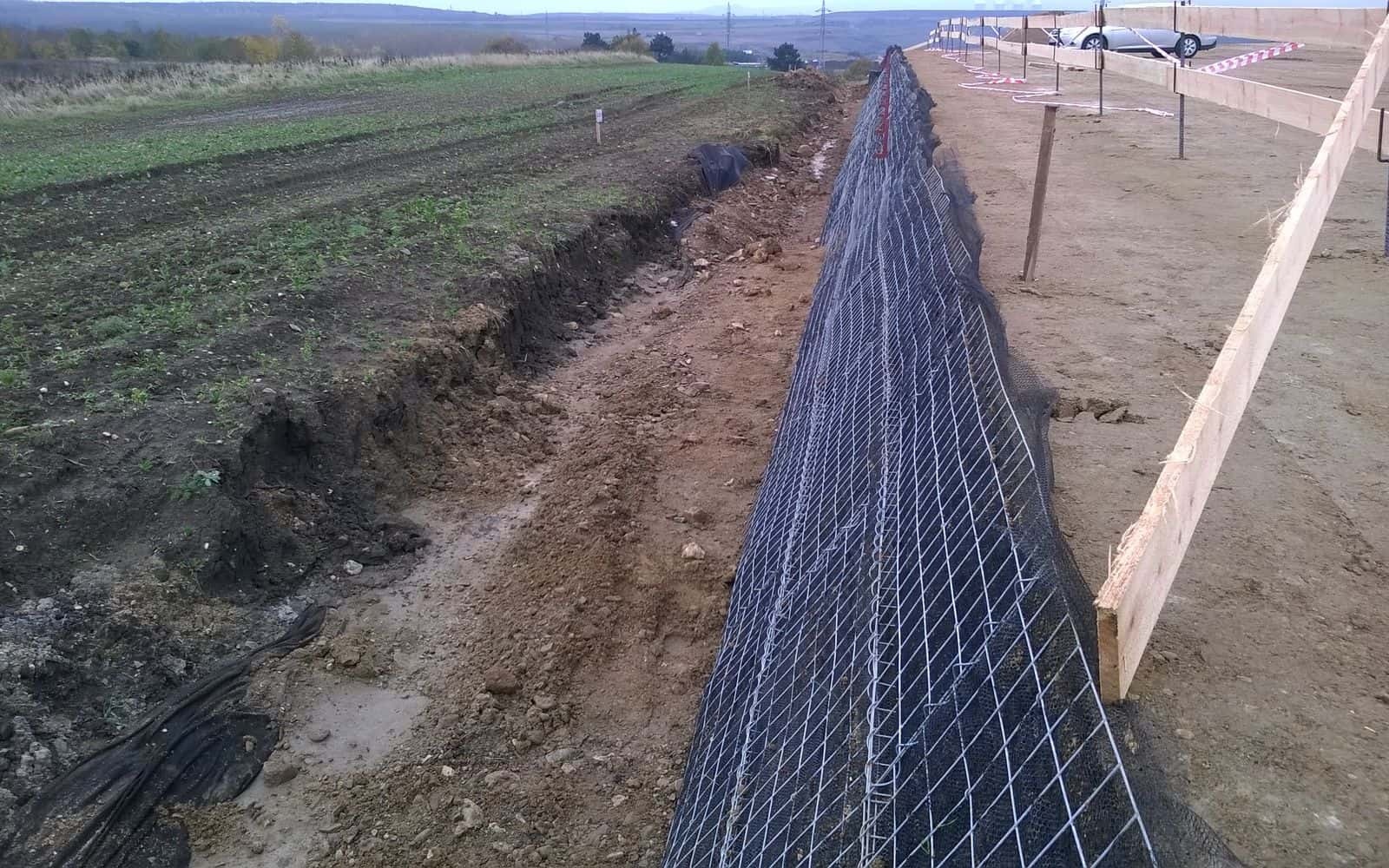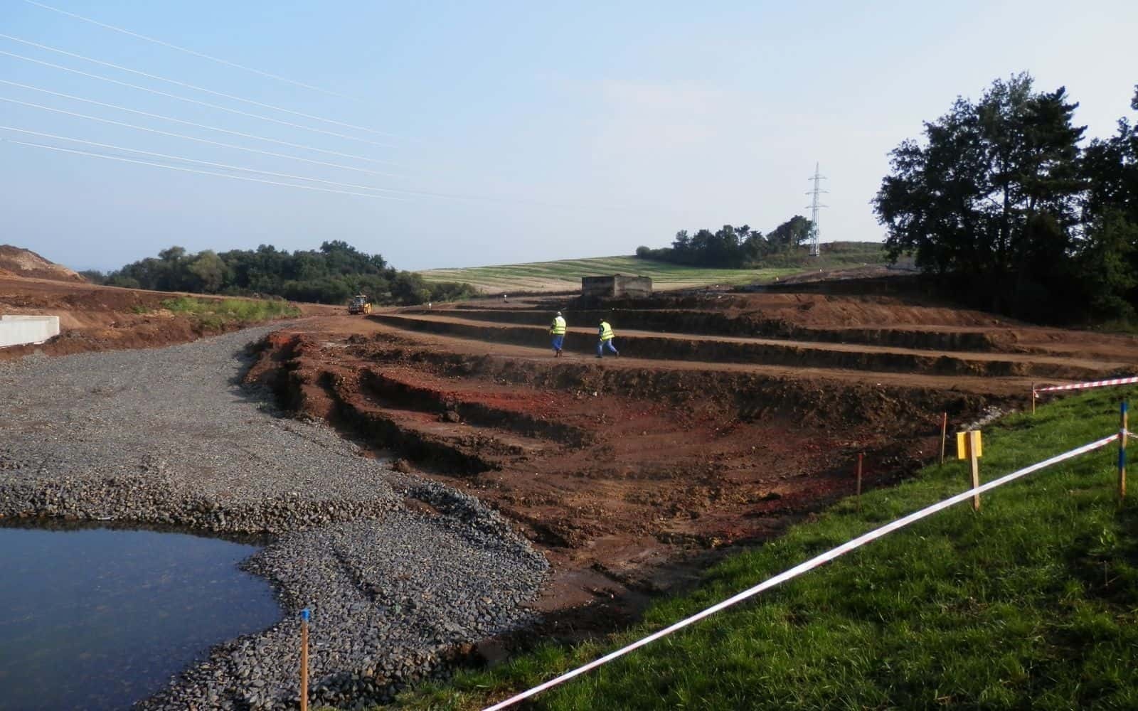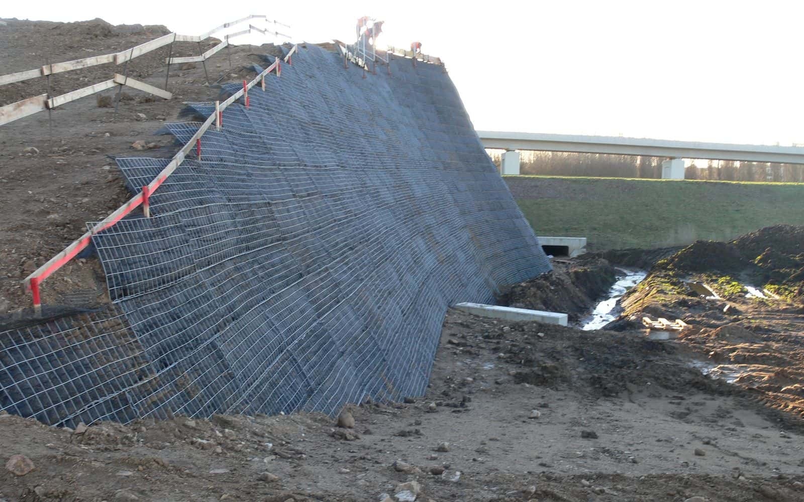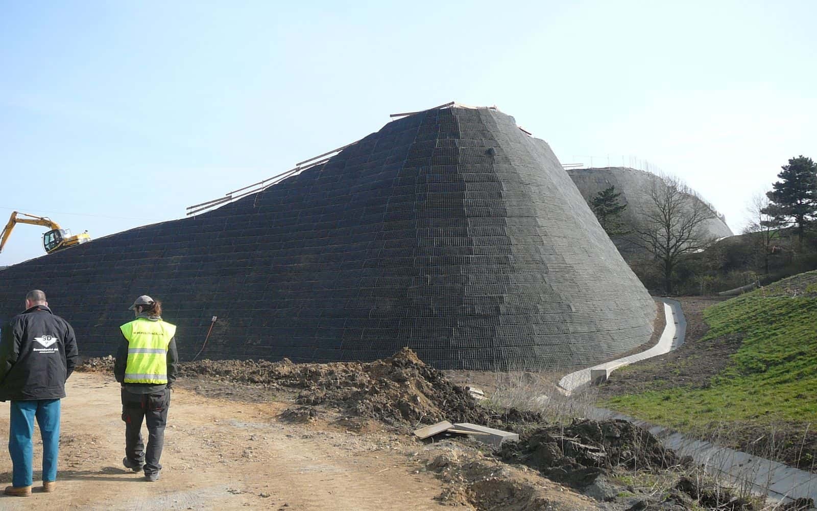 Obec Březno u Chomutova trpela kvôli premávke blízkeho hnedouhoľného lomu zníženou kvalitou ovzdušia a zvýšenou hladinou hluku. Aby boli tieto negatívne vplyvy na obyvateľa znížené, bol vybudovaný vysoký ochranný zemný val z vystuženej zeminy so zeleným lícom. Stavba je zaujímavá nielen svojou výškou, ale hlavne pôdorysným zakrivením a zmenou sklonu líca po dĺžke konštrukcie dokazujúce veľkú tvarovú variabilitu stavebnicového systému vystužených strmých svahov.