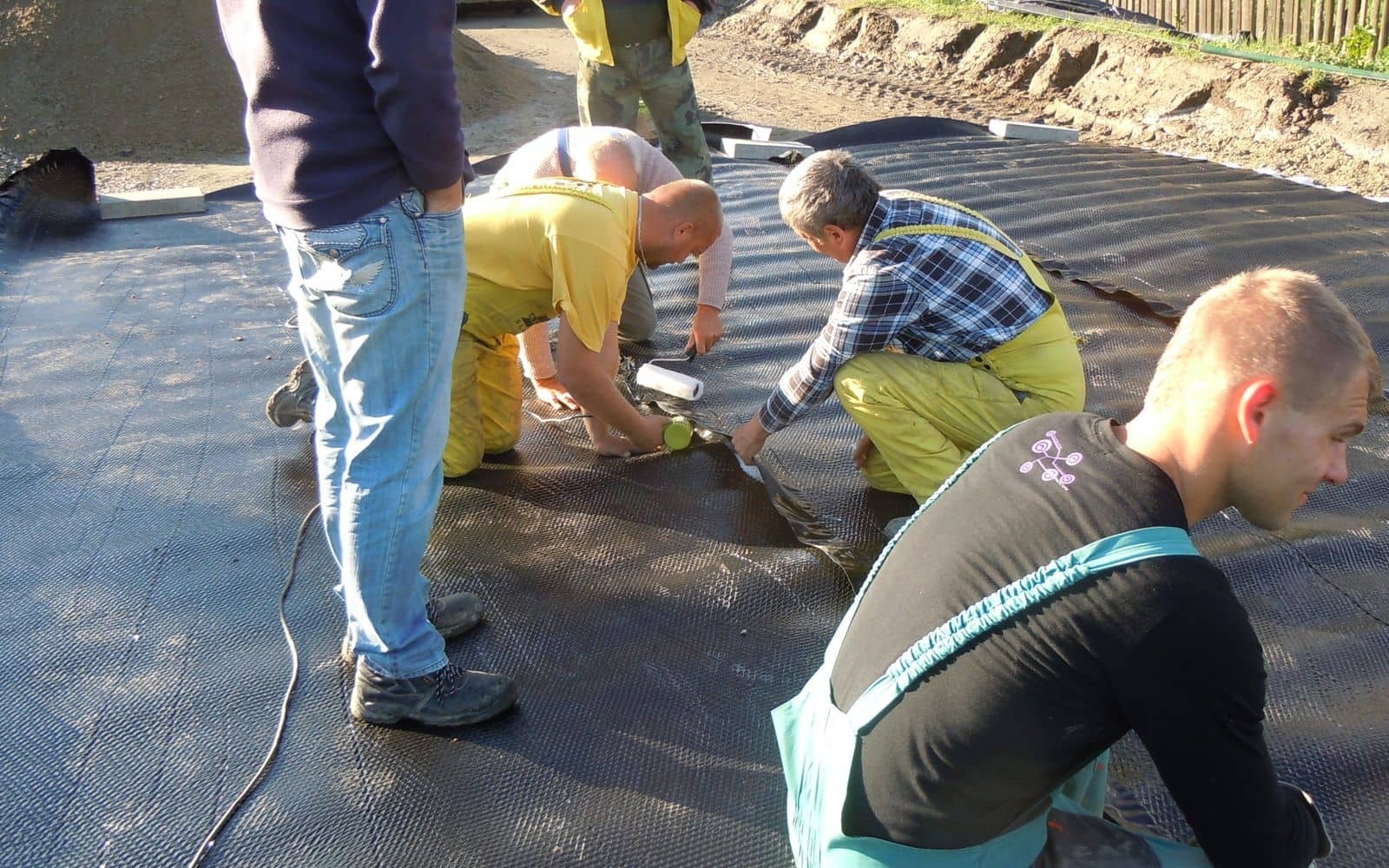 Odstránenie problému s vysokou hladinou spodnej vody inštaláciou drenážneho geokompozitu fóliou nahor a vzájomným zvarením tak, aby vznikla kompaktná plocha. Drenážny geokompozit je od konštrukčných vrstiev vozovky oddelený separačnú tkanú geotextíliou.