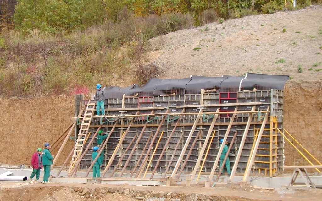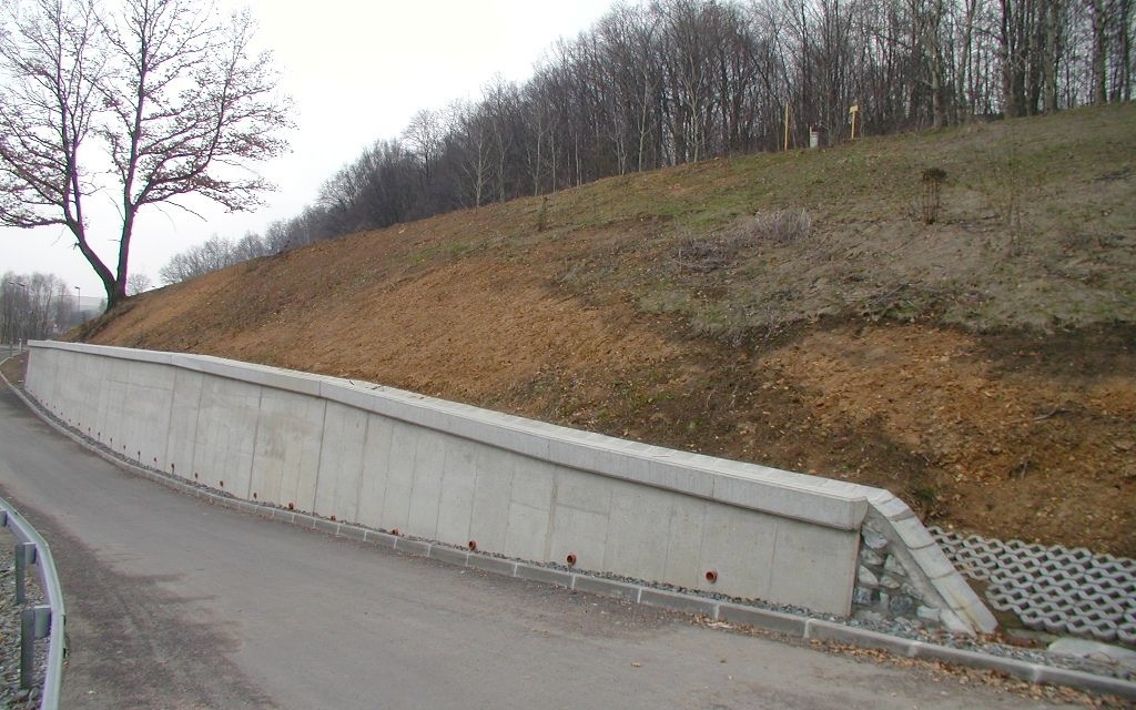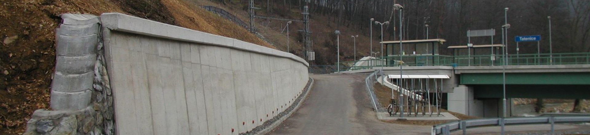 V svahovitom teréne bolo pri budovaní prístupovej komunikácie k vlakovému nástupišťu nutné vybudovať zárubný múr. S ohľadom na geomorfológiu a výškové prevýšenie terénu bol zárubný múr navrhnutý ako gravitačný betónový. U konštrukcie bolo nutné zaistiť bezpečné odvedenie zrážkových vôd a rôznych zvodní tak, aby nedochádzalo k zvýšenému namáhaniu na opornú stenu hydrostatickým zaťažením.