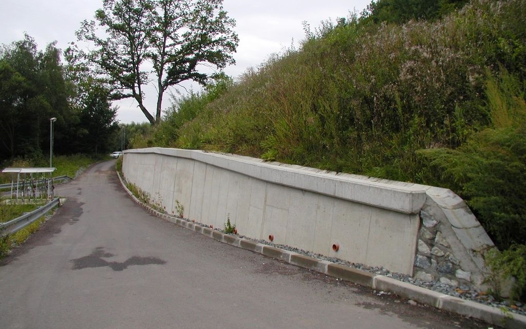 V svahovitom teréne bolo pri budovaní prístupovej komunikácie k vlakovému nástupišťu nutné vybudovať zárubný múr. S ohľadom na geomorfológiu a výškové prevýšenie terénu bol zárubný múr navrhnutý ako gravitačný betónový. U konštrukcie bolo nutné zaistiť bezpečné odvedenie zrážkových vôd a rôznych zvodní tak, aby nedochádzalo k zvýšenému namáhaniu na opornú stenu hydrostatickým zaťažením.