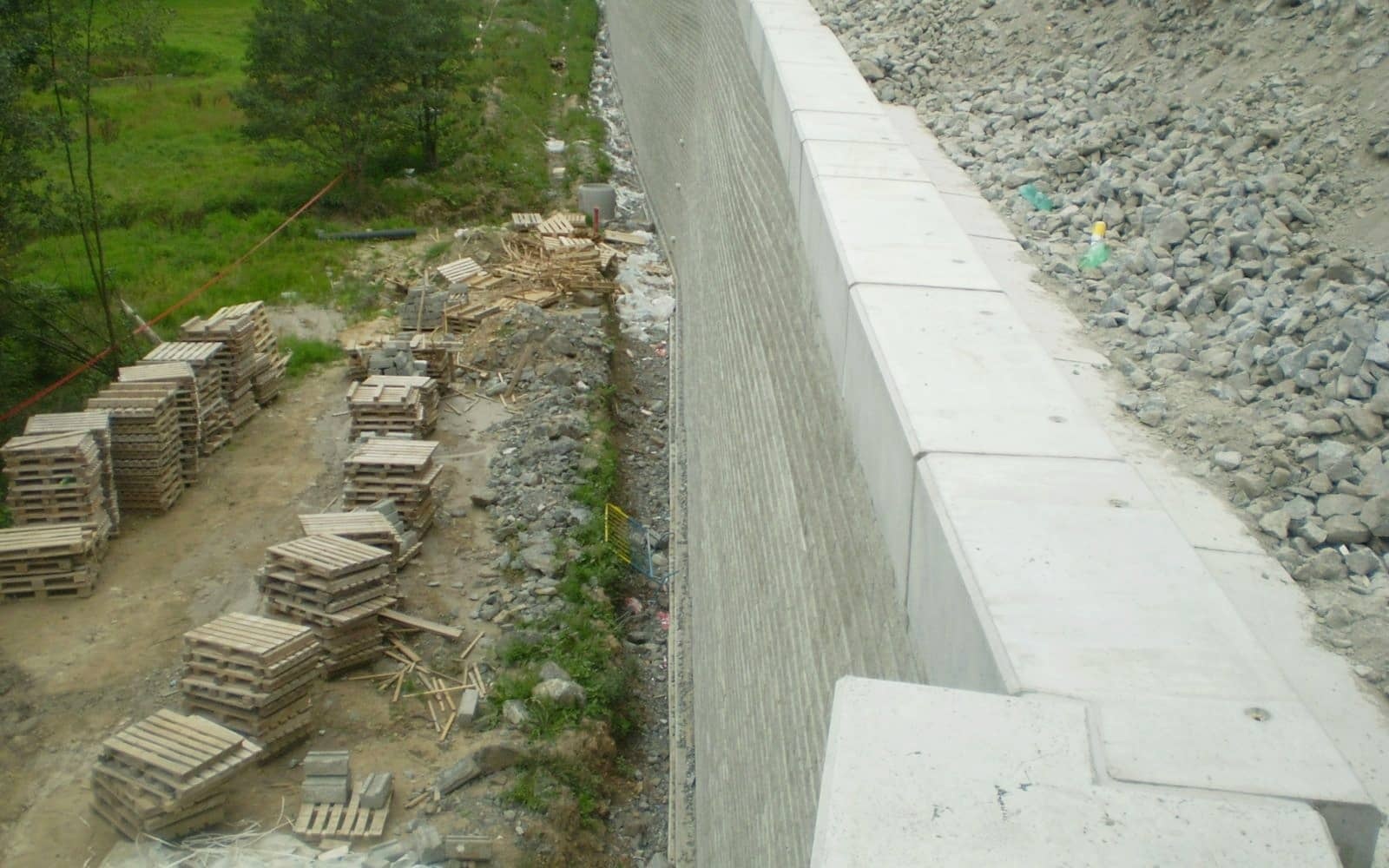 Jedná sa o trvalú opornú stenu podchytáva pätu rozšíreného železničného násypu. Výška múru je premenná od 0,60 m do 9,65 m v sklone 86° od vodorovnej. Nad korunou múru je nadnásyp výšky cca 2,20 m v sklone 1:1,50. Na začiatku úseku múr plynule prechádza do terénu, na konci nadväzuje na železničný most. Koruna múru nadväzuje na čelo mosta vo výške mostné rímsy.