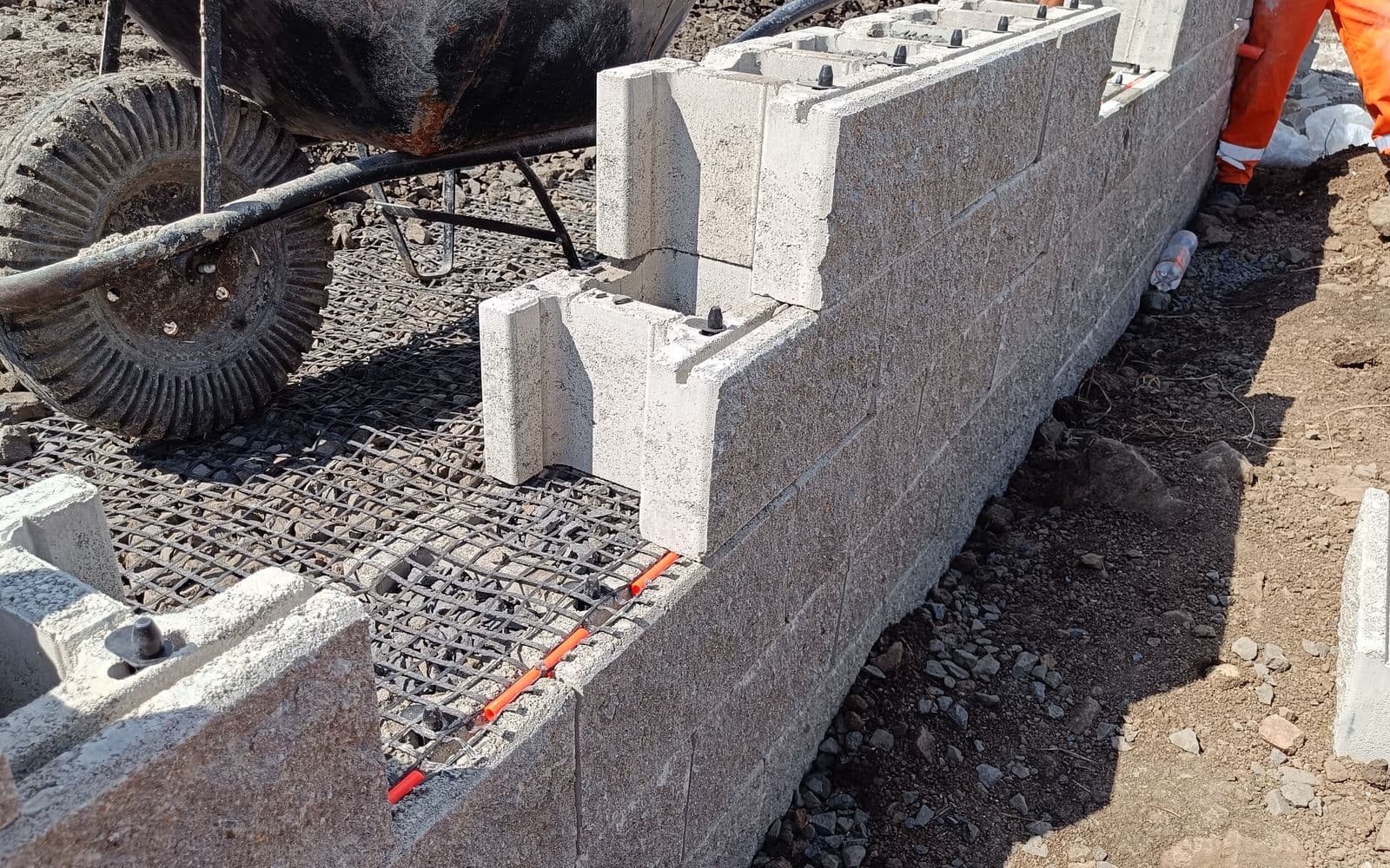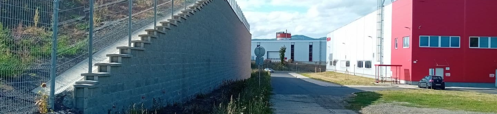 V rámci areálu výrobnej haly bolo potrebné na vyrovnanie terénnych výškových rozdielov vybudovať po obvode areálu viacero oporných ŽB stien.