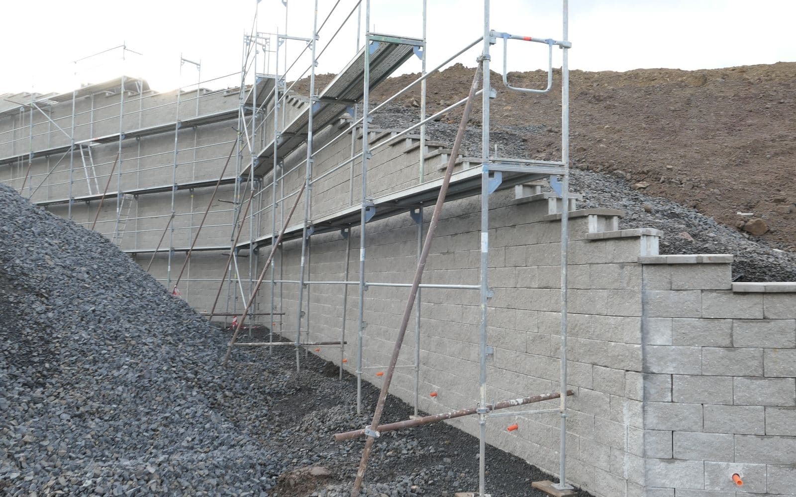 Oporné múry v priemyselnom parku v Ostrove nad Ohří