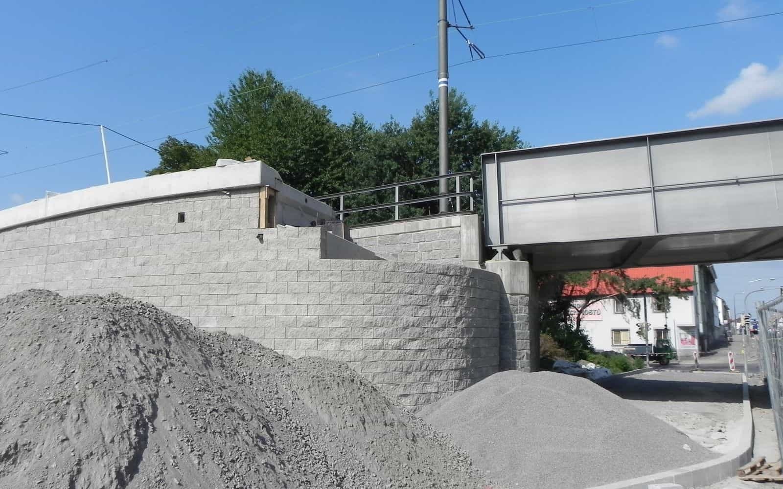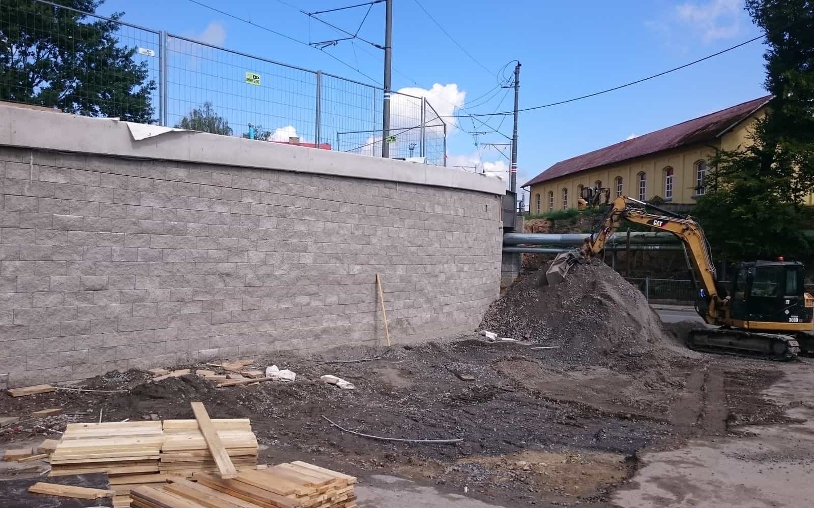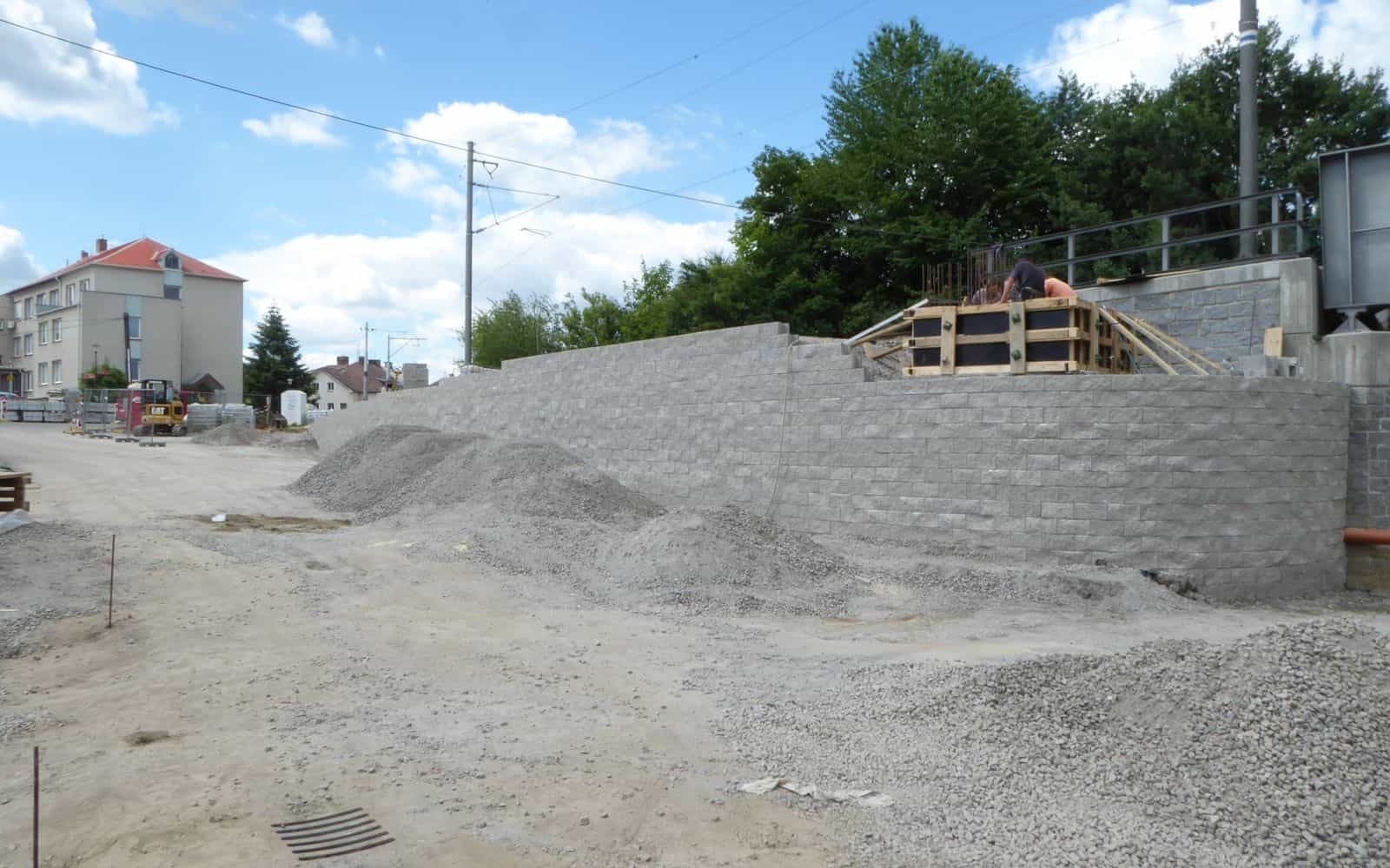 Na zabezpečenie výškového rozdielu medzi jednotlivými vetvami prístupu na lávku bol zrealizovaný nový oporný múr z vystuženej zeminy.