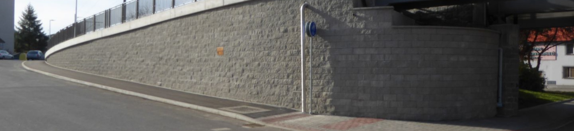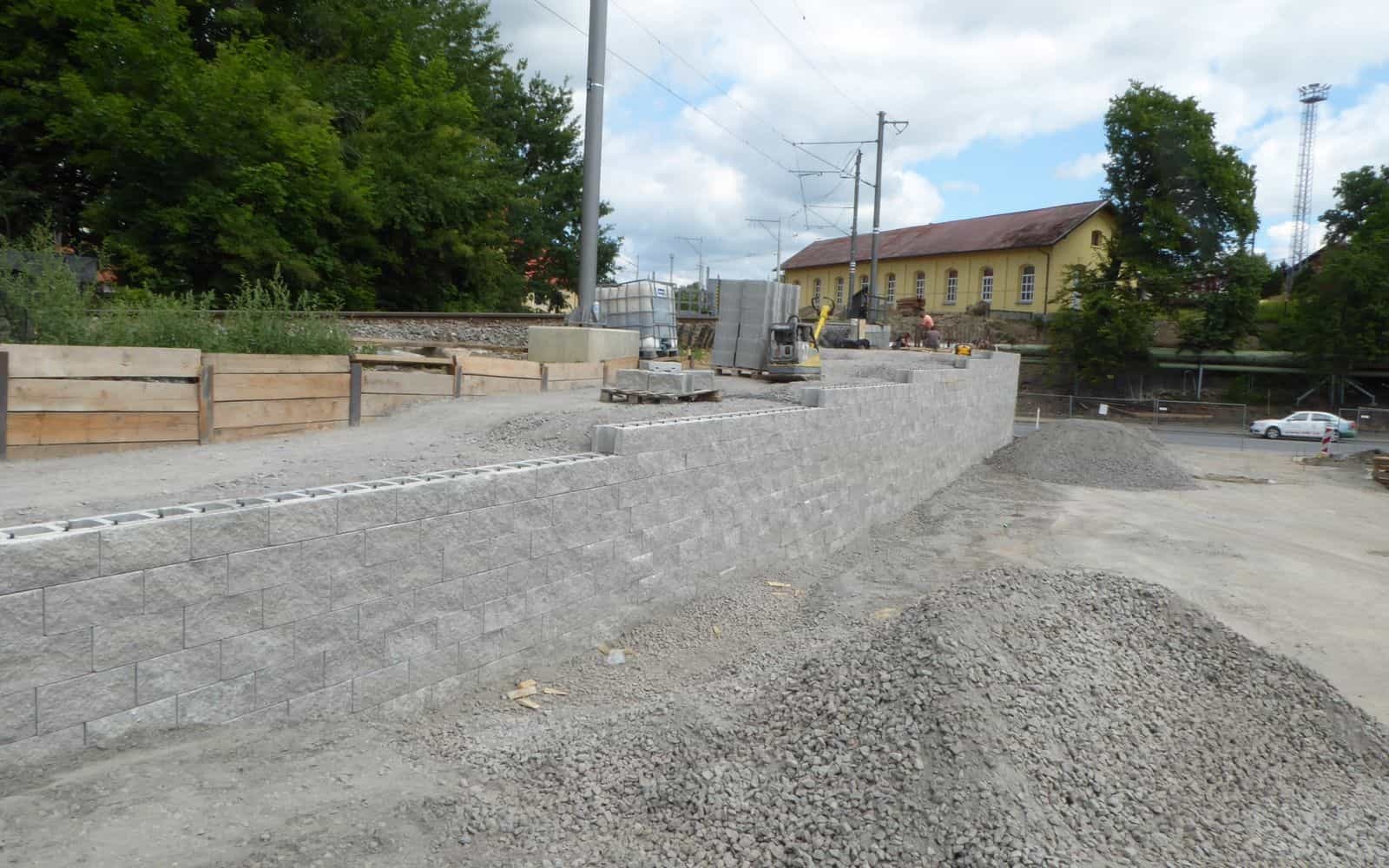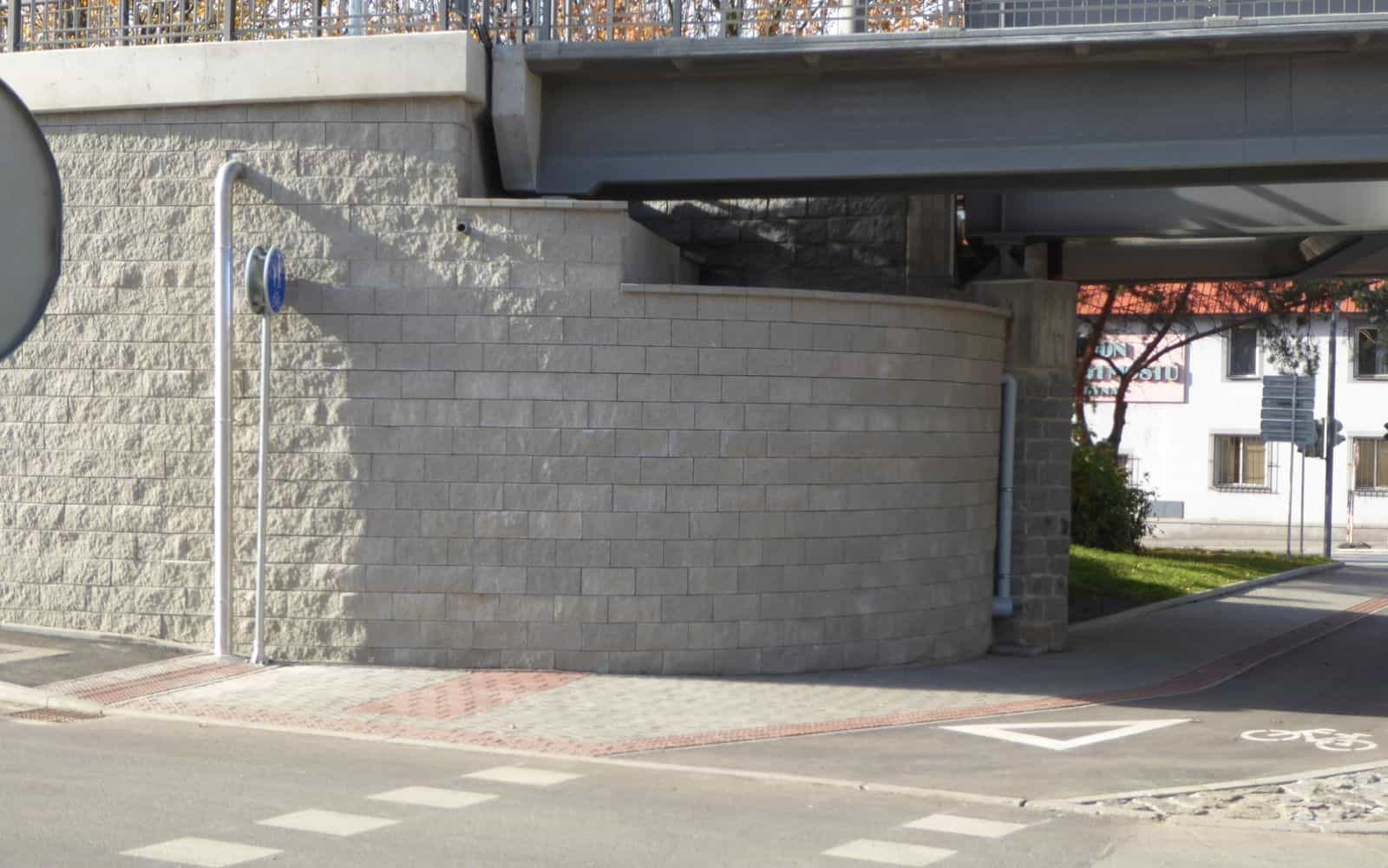 Na zabezpečenie výškového rozdielu medzi jednotlivými vetvami prístupu na lávku bol zrealizovaný nový oporný múr z vystuženej zeminy.