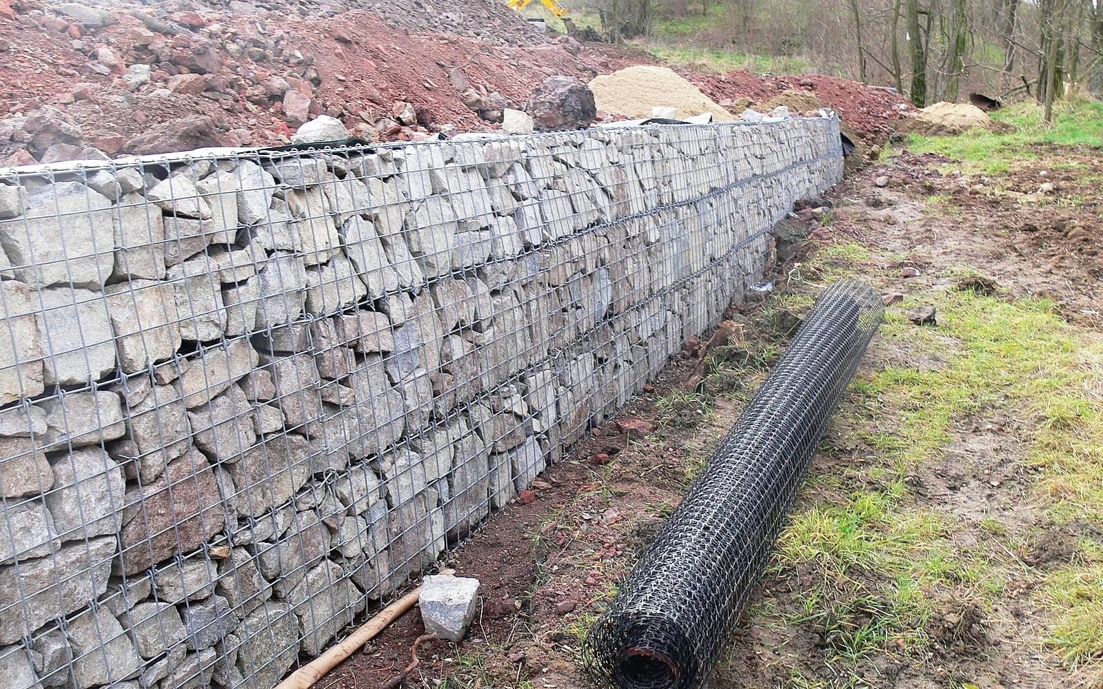 Oporný múr s lícom z prírodného kameňa v Ivančiciach