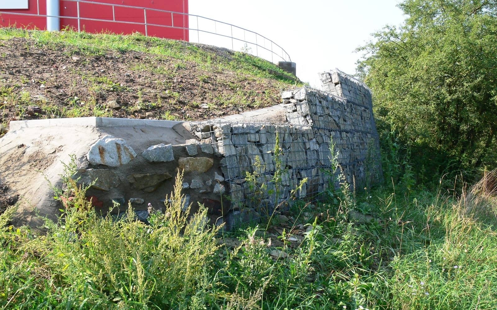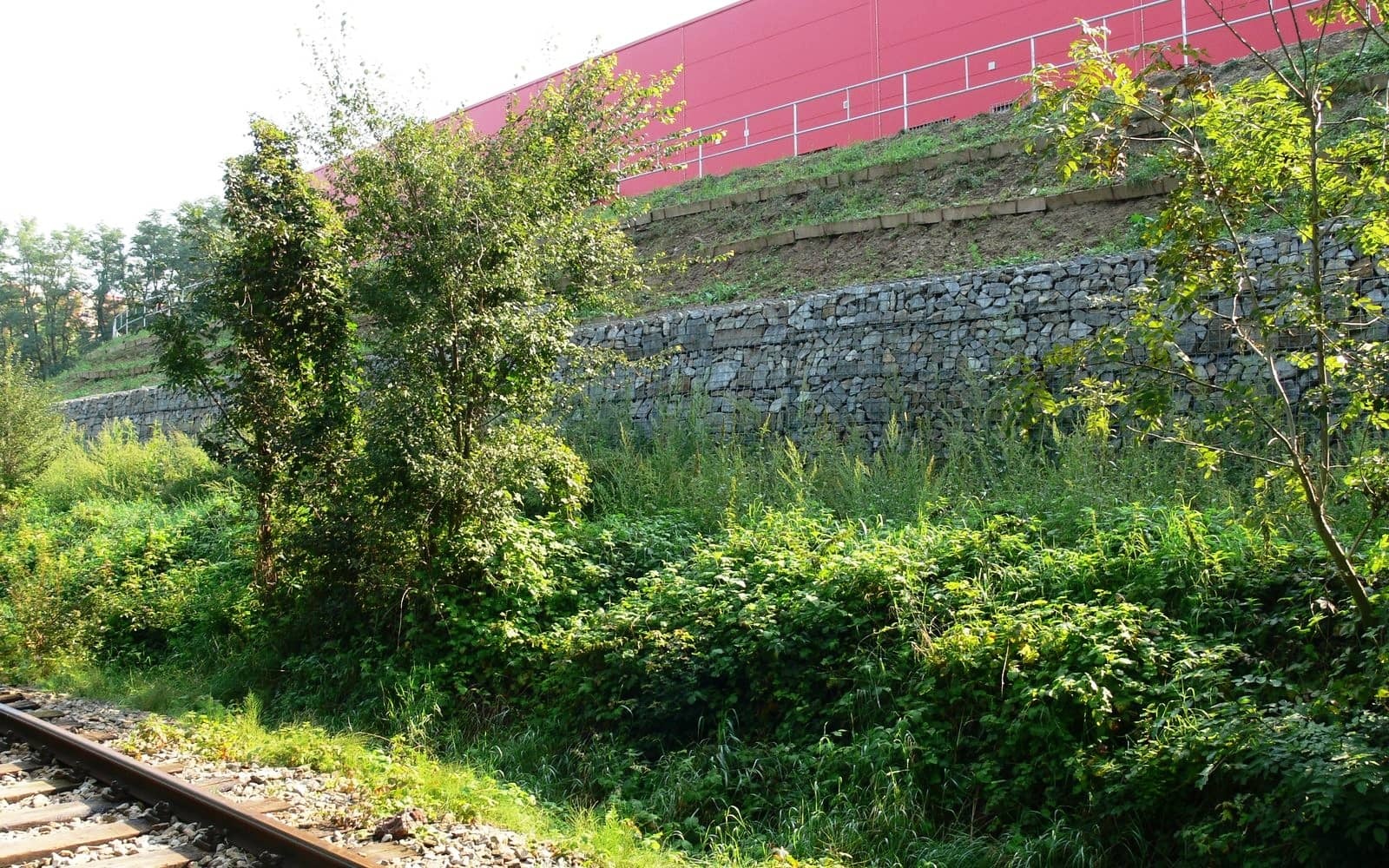 Táto konštrukcia dovolila investorovi využiť svahovitý pozemok pre komerčnú výstavbu v blízkosti železničnej trate. Súčasne sa jedná o vysoko estetickú variantu opornej konštrukcie.