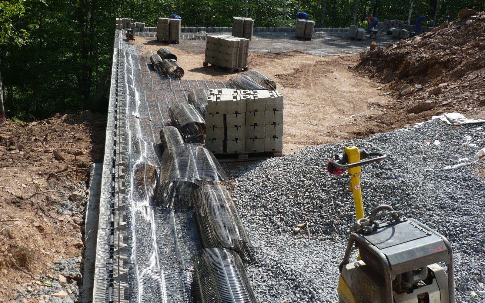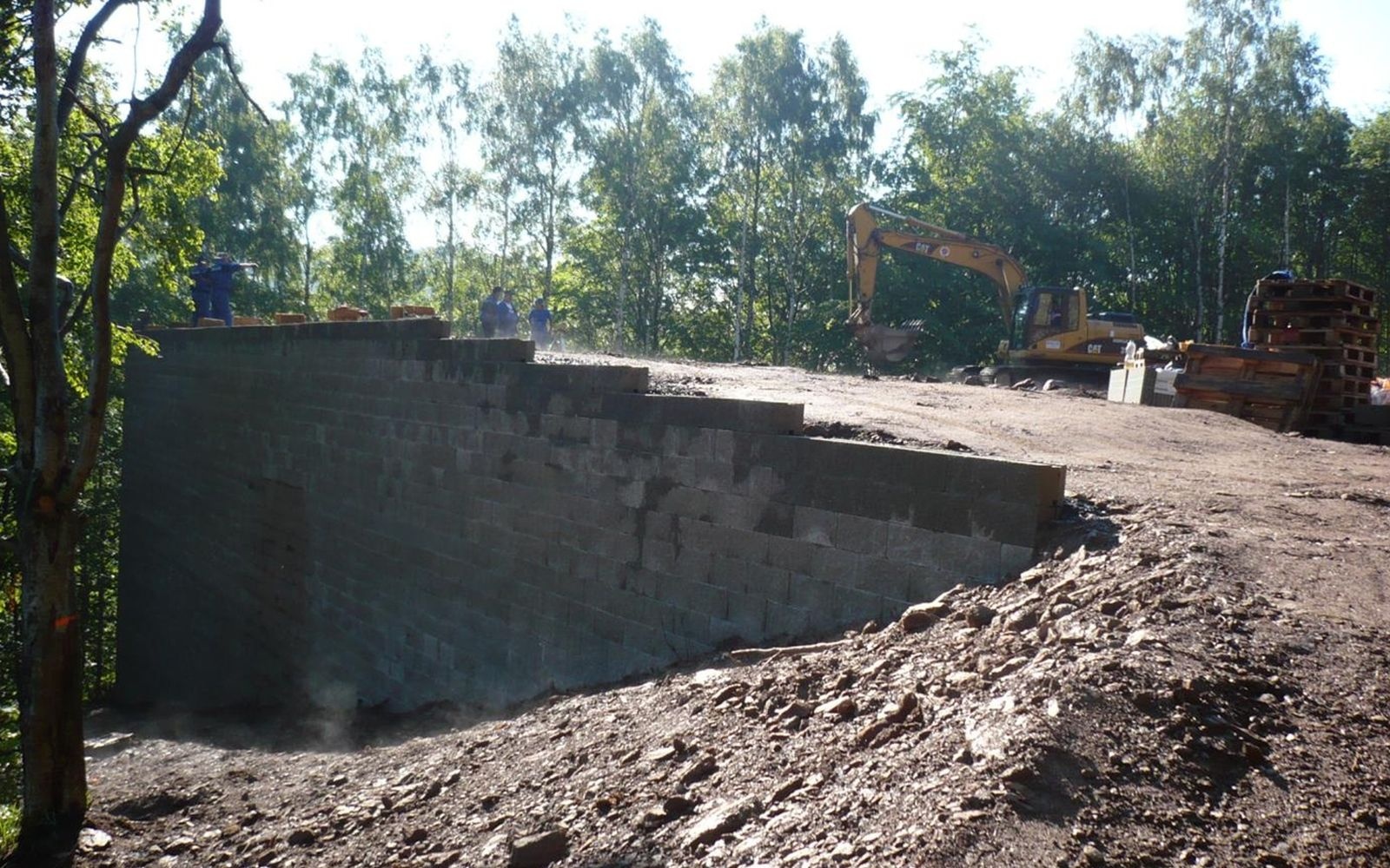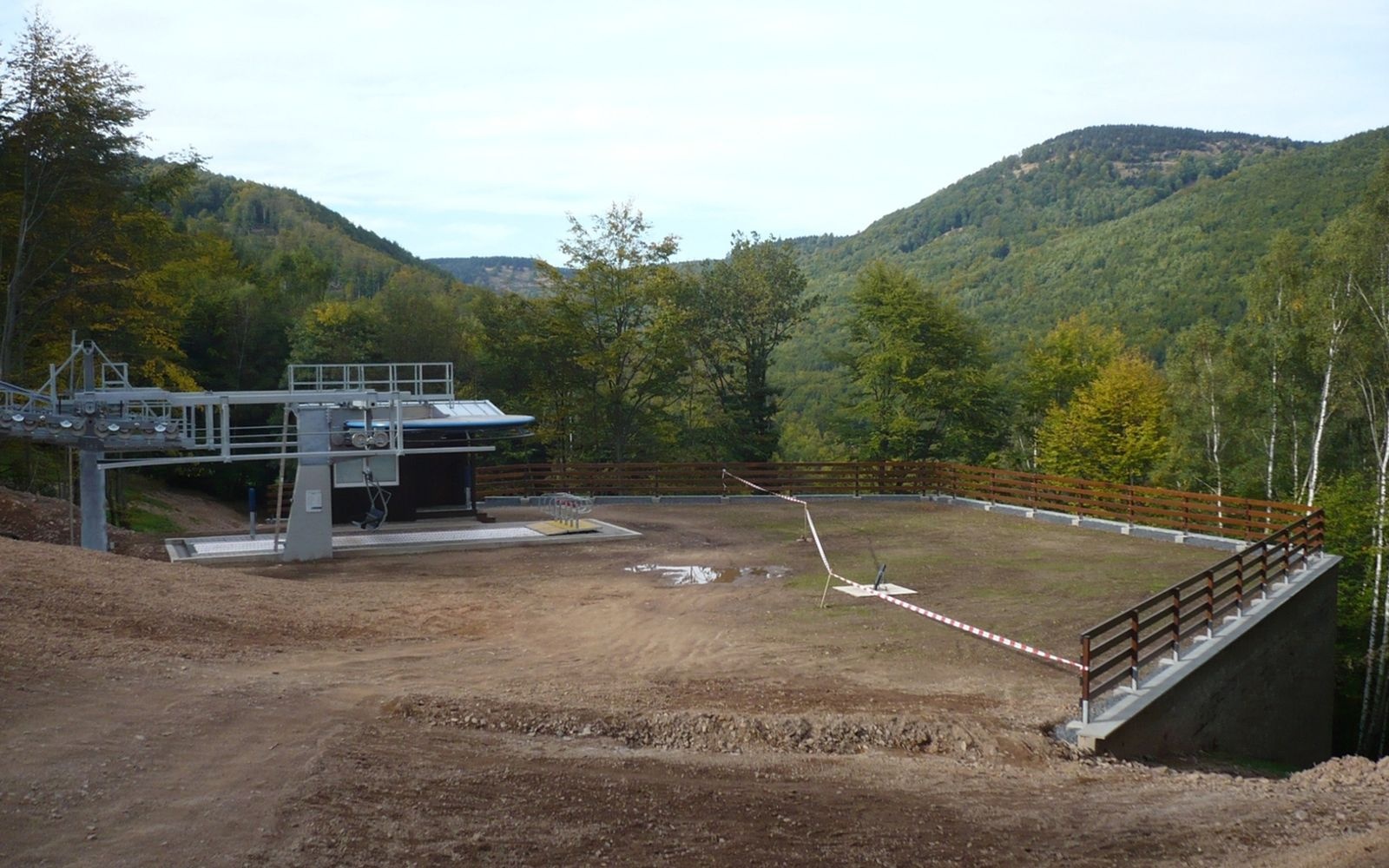 Oporný múr vyrovnávajúci strmý terén stanice lanovej dráhy zjazdovky v Klínech