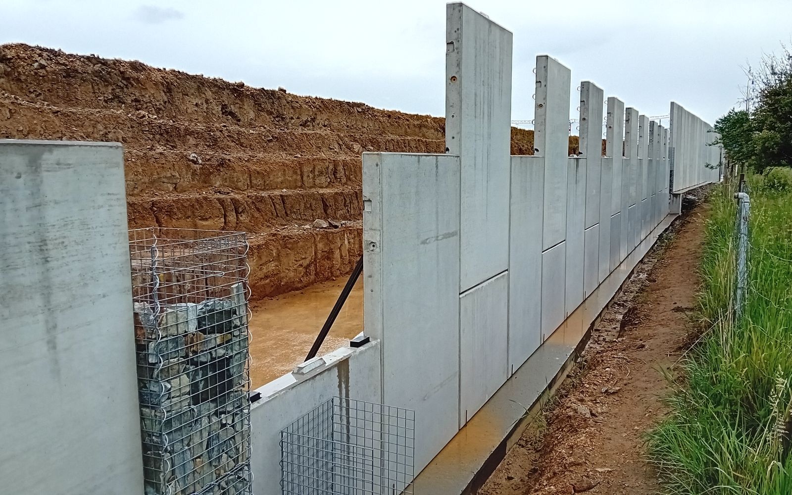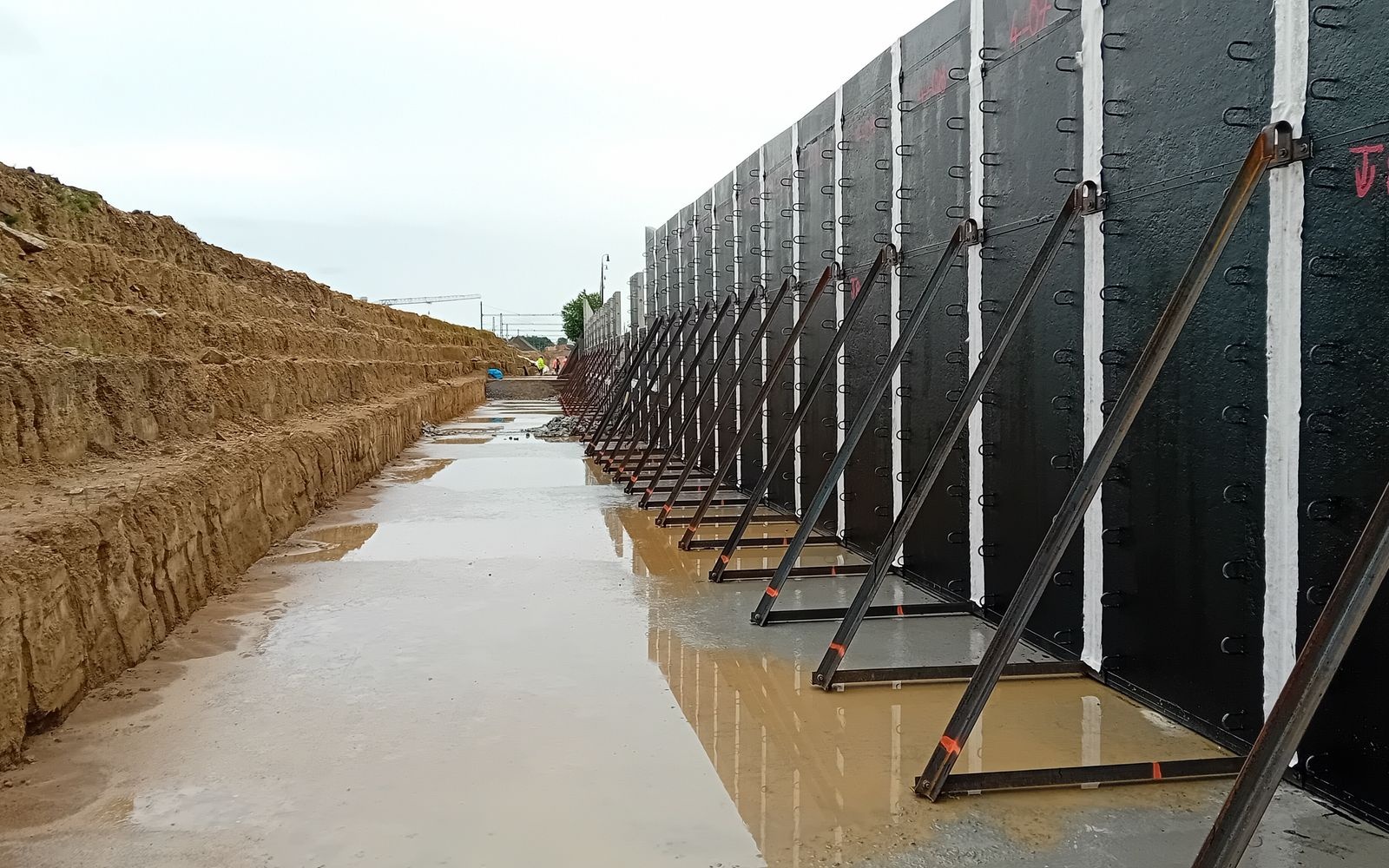 Oporný múr z vystuženej zeminy s lícom veľkoplošných panelov na trati vo Vlkove pri Tišnove