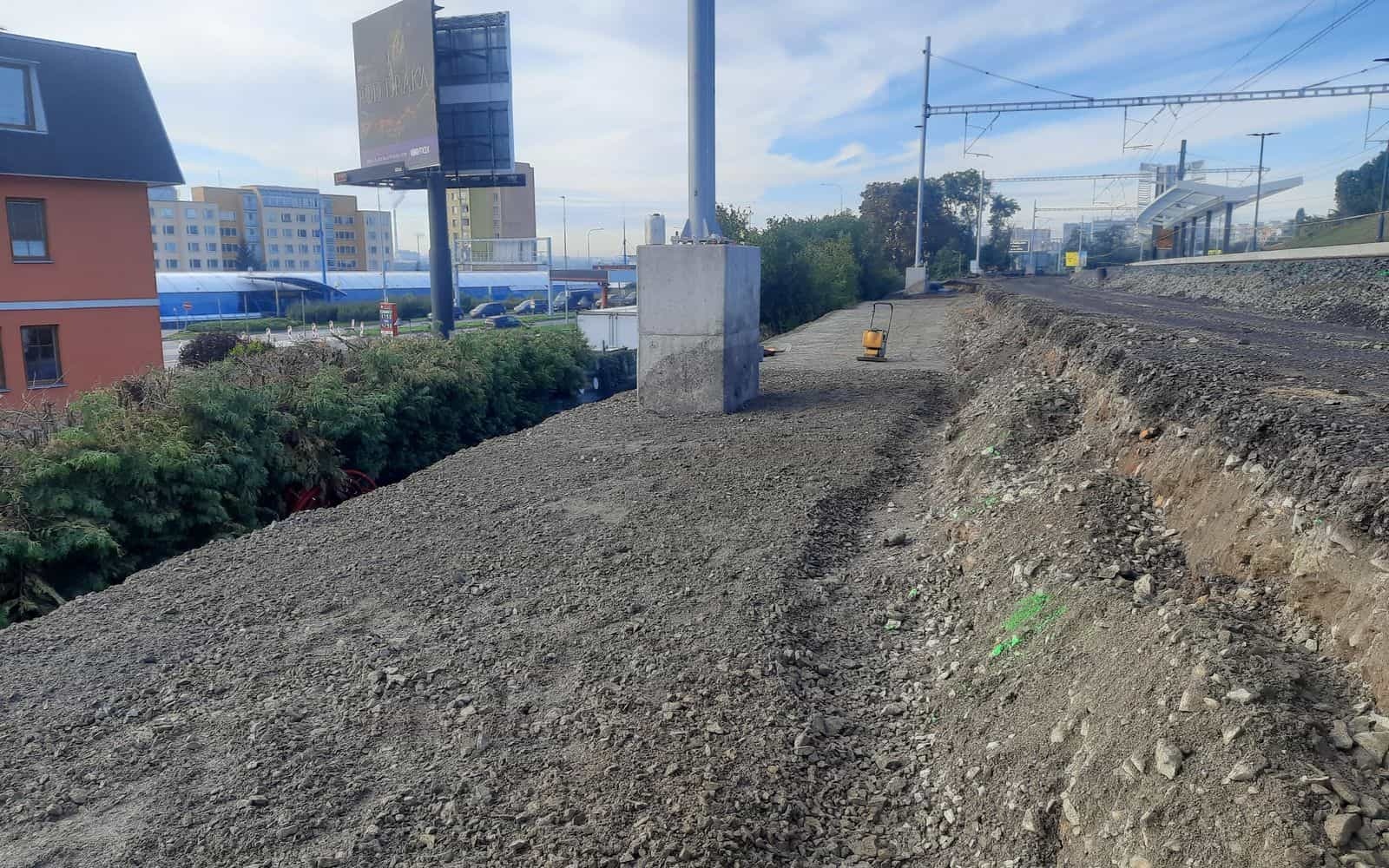 Praha - Rajská zahrada – vystužená oporná konštrukcia pod nástupišťom