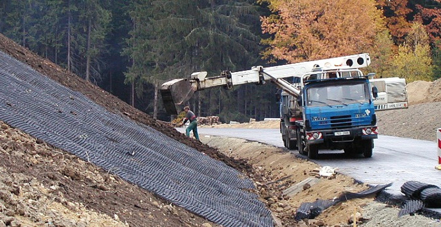 Prírodná ochrana svahov jutovou geotextíliou |