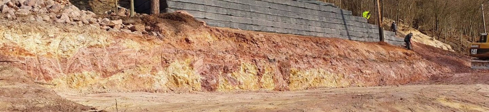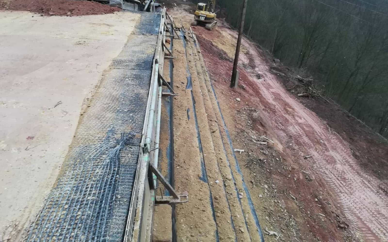 Pred výstavbou rodinného domu v Kadani bolo potrebné vybudovať zjazd na svahovitý pozemok. Prevýšenie bolo vyriešené pomocou vystuženej konštrukcie.