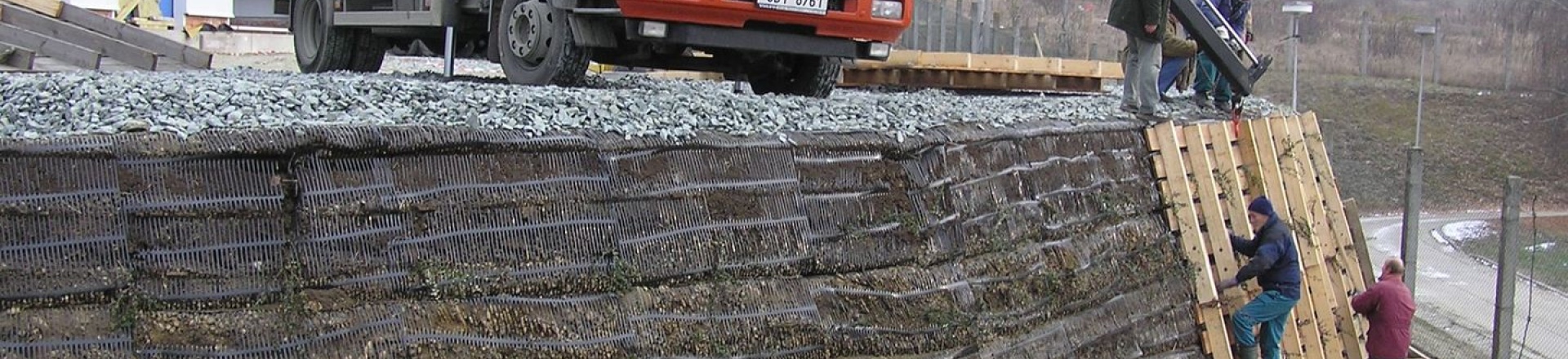 Oporná konštrukcia/strmý svah za použitia vystuženej zeminy.