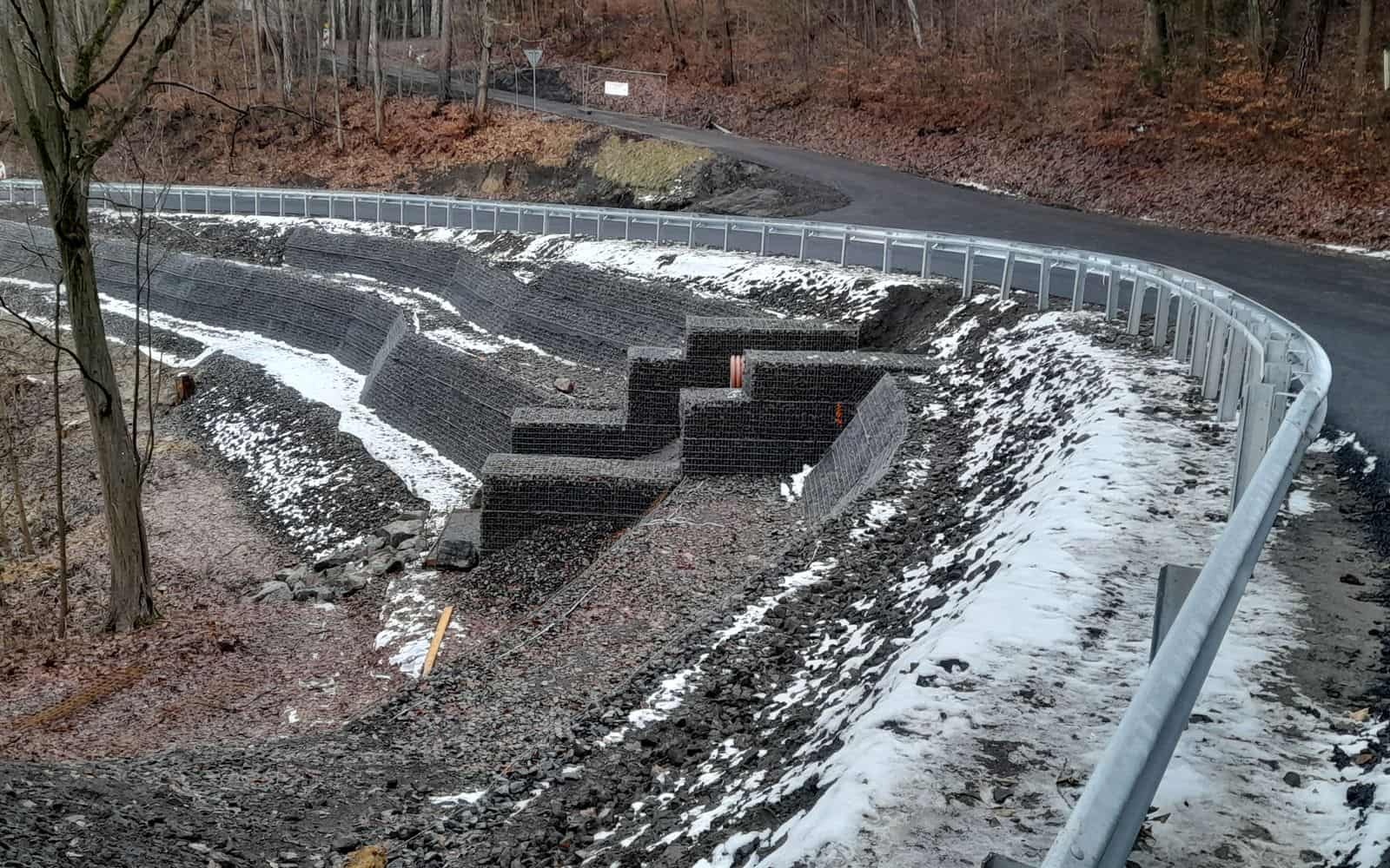 Sanácia havarijného stavu 100‑metrového úseku komunikácie a priľahlého priepustu, ktorý bol poškodený svahovými pohybmi.