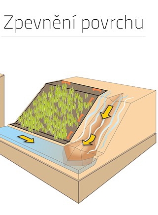 V prípade, že je vlastná stabilita svahu v poriadku, ale dochádza k rozrušovaniu jeho povrchu, sú na mieste opatrenia pre povrchové spevnenia svahu, ktoré sa tiež nazývajú protierózna ochrana. Pri týchto opatreniach sa povrch svahu spevňuje pokrytím sieťami, rohožami, matracmi alebo geobunkami za účelom zabrániť povrchovej erózii spôsobenej najčastejšie prúdiacou vodou alebo namáhaním vetrom.