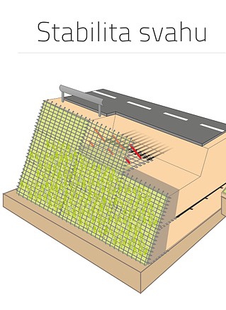 Spevnenie zlepšujúce stabilitu svahu pri nových konštrukciách sa uplatňuje najmä pri výstavbe zemných telies komunikácií alebo pri pozemkových úpravách slúžiacich k výstavbe budov. Často sa jedná o svahy s pomerne vysokým sklonom.