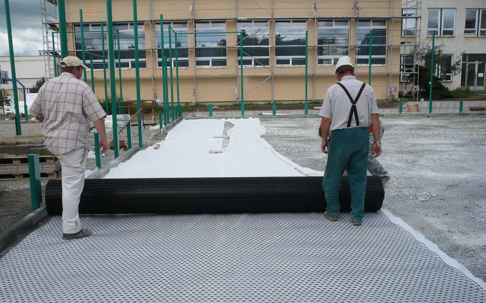 Súčasťou projektu na športový areál ZŠ Dr. Joklíka bolo aj volejbalové ihrisko. Na zemnú pláň ihriska sme dodali trojosovú geomrežu Tensar TriAx.