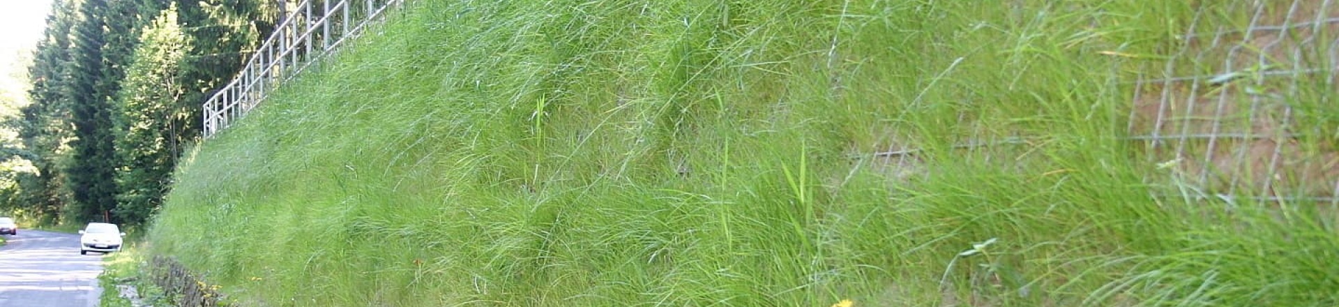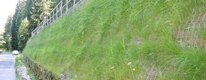 Oporná konštrukcia/strmý svah za použitia vystuženej zeminy.