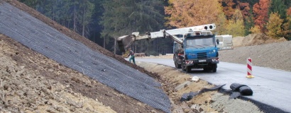 Súčasťou projektu preložky komunikácie II/150 v lesnom úseku okolo prírodnej rezervácie Stvořidla je realizácia 2 vystužených strmých svahov.
