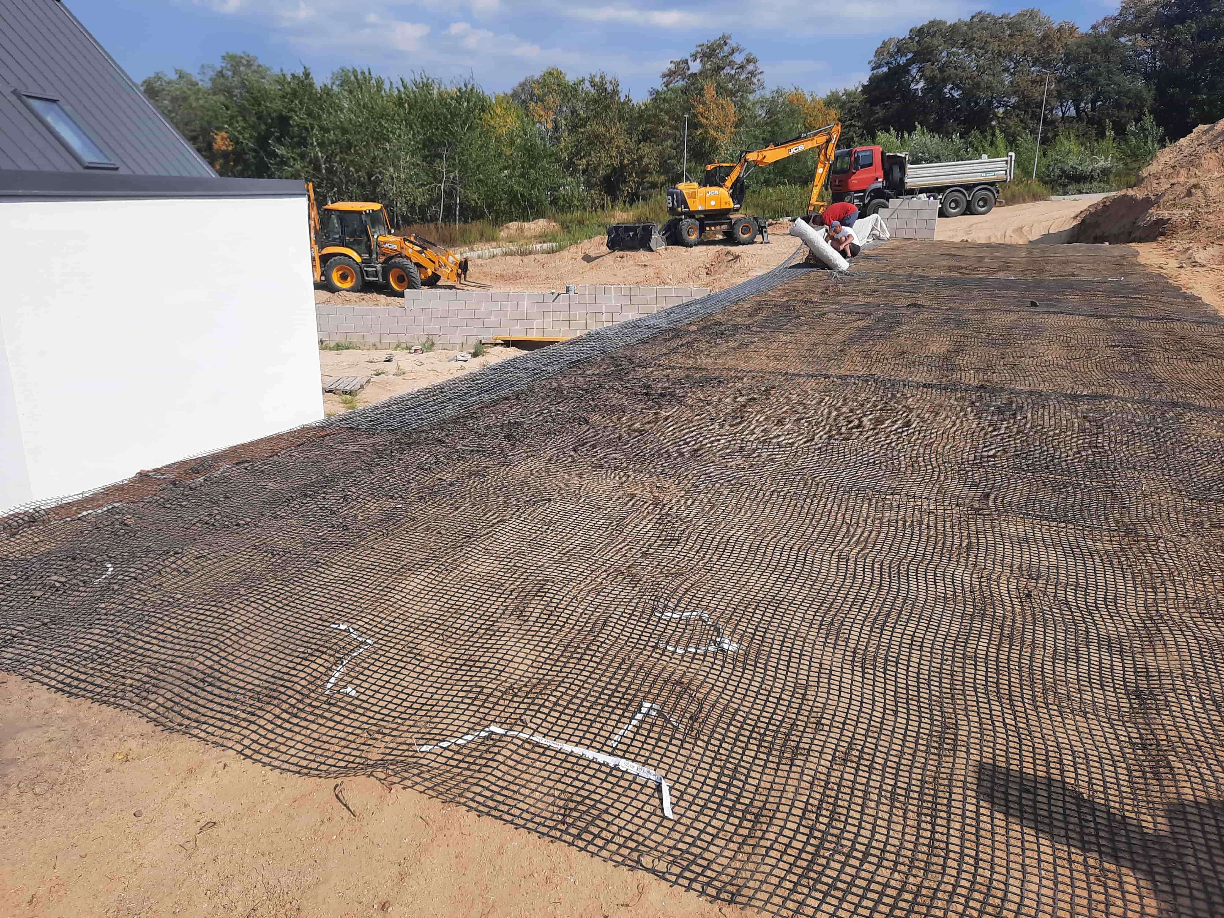 Vyrovnanie pozemkov pre výstavbu rodinných domov pomocou vystužených strmých svahov.