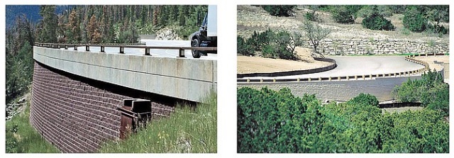 Pri konvenčných spôsobov výstavby oporných konštrukcií akými sú železobetónové múry je tvarovanie do oblúkov realizovateľné len za predpokladu použitia zložitého spôsobu debnenia. Systémy Mesa sa stavajú metódou suchého murovania, kedy skosené hrany na bokoch tvaroviek umožňujú vytvárať smerové oblúky. Minimálny polomer konvexného / vypuklého oblúka je 1,5 m. Zloženým oblúkom môžeme napríklad vytvoriť "slučku", ktorou môžeme obísť strom, ktorý by nám inak vytvoril prekážku a musel by byť odstránený.