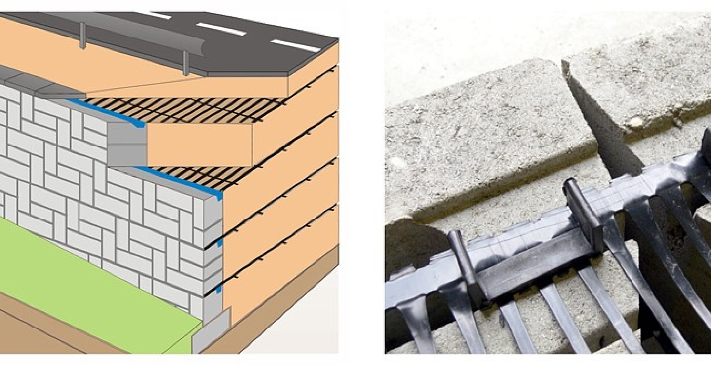 monolitické geomreže Tensar - zachytávajú ťahové sily v násype
