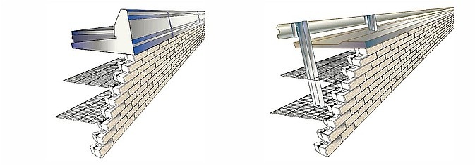 Ukončenie múru zo systému Tensartech Mesa je možné v jeho korune vykonať vo viacerých variáciách. Jednou z variant je nalepenie zákrytového prvku priamo na posledný rad tvaroviek mrazuvzdorným lepidlom. V prípade nutnosti osadenia zvodidla priamo v korune múru je nutné navrhnúť železobetónovou rímsu, na ktorú bude zvodidlo osadené. Železobetónová rímsa môže byť prefabrikovaná alebo monolitická a musí byť navrhnutá tak, aby vyhovela na preklopenie a posunutie v základovej škáre v prípade nárazu vozidla. Ak je možné zvodidlo osadiť vo väčšej vzdialenosti od koruny múru, tak je možné stĺpiky baraniť priamo do vystuženého bloku.