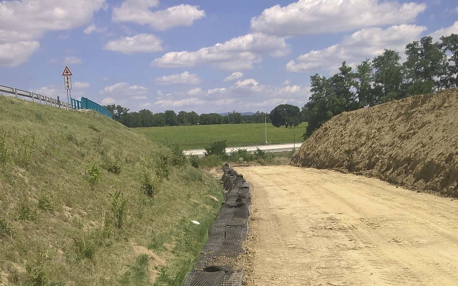 Terminál na R1 – Beladice, strmý svah z vystuženej zeminy