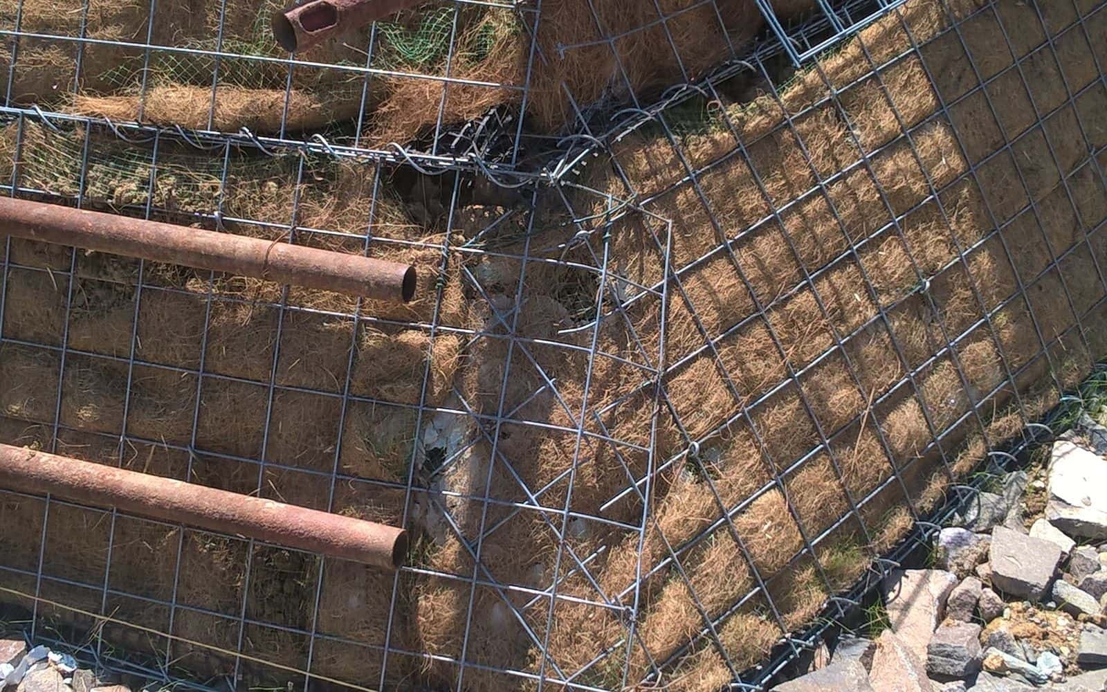 Novovybudovaný strmý svah bol vytvorený z certifikovanej systémovej konštrukcie v sklone 60°. Horizontálne vrstvy geomreží zabezpečujú stabilitu a funkčnosť celej konštrukcie, oceľové panely spolu s georohožou zadržia zásypovú zeminu v čele konštrukcie a vytvoria oporu pre koreňový systém vegetácie. Neoddeliteľnou súčasťou systému je zásypová zemina, ktorej šmykové parametre významne ovplyvňujú parametre výstužnej geomreže (pevnosť, kotevná dĺžka). Spevnenie svahu bolo realizované v celkovej dĺžke 134 m, v sklone 60° a s maximálnou výškou približne 5,0 m. Konštrukcia je vystužená pomocou jednoosových geomreží Miragrid GX.