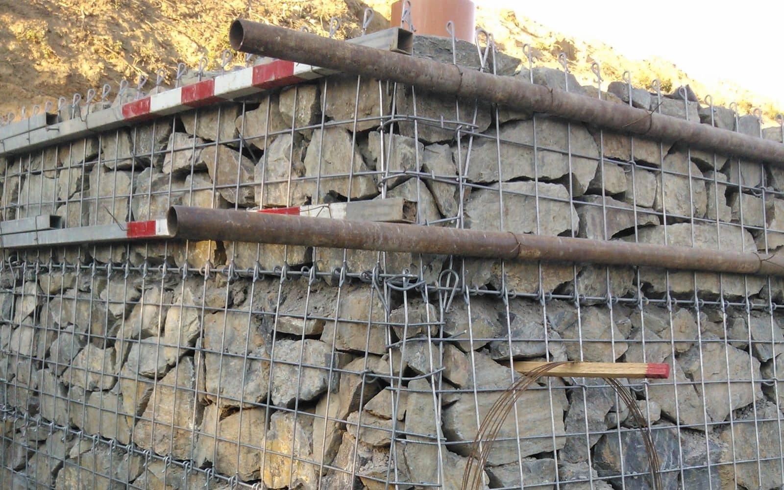 Na svahovitých parcelách plánoval investor výstavbu rodinných domov, preto bolo nutné pozemok vyrovnať. Svah bol v sklone 13-18 °. Projektanti sa rozhodli pre konštrukciu z vystuženej zeminy s lícom z kameniva v sklone 80 °. Na tejto konštrukciou je ešte nadsypaný vystužený svah v sklone 1:1.