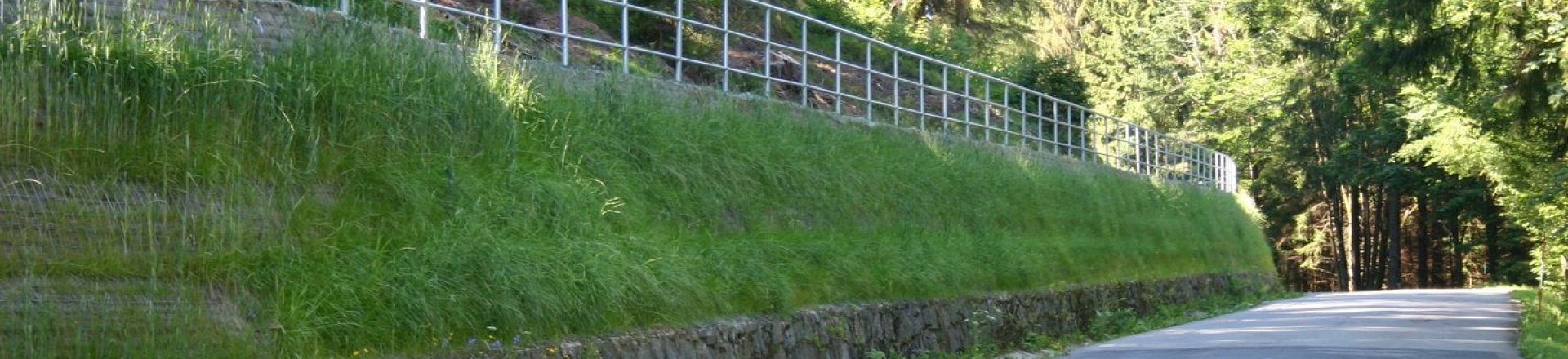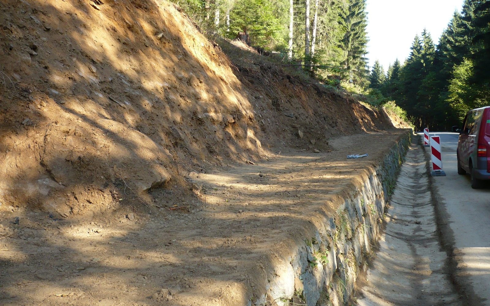 Pre väčšiu bezpečnosť cyklistov na frekventovanej komunikácii bolo navrhnuté výškové oddelenie samotnej cesty a plánovanej cyklotrasy. Na existujúci kamenný múrik bol vystavaný vystužený svah v dĺžke 420 m a výške až 3,5 m. V korune svahu bolo osadené zábradlie na zvýšenie bezpečnosti cyklistov.