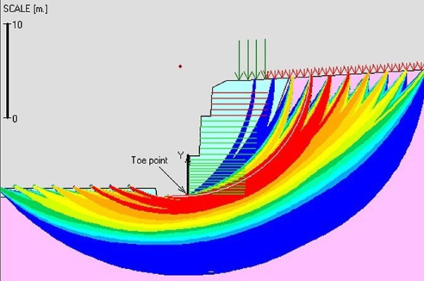 Návrh vystuženého zeminového bloku sa vykonal v súlade s britskou návrhovou metodikou Tieback Wedge (BS 8006). Rozloženie tuhosti výstužných prvkov po výške konštrukcie rešpektuje podľa tejto metodiky návrhovú požiadavku na deformačné správanie konštrukcie, pričom sa predpokladá, že napätie vo výstuhách vyvodí ich pomerné dĺžkové pretvorenie max. na úrovni 0,5 %. Takto navrhnutý zeminový blok sa následne posúdil na celkovú stabilitu konštrukcie podľa zásad EC7. Na celkovú predikciu pretvárania konštrukcie, určenie reálneho deformačného správania konštrukcie a predovšetkým na nastavenie inicializačného záklonu lícnych prvkov bolo nevyhnutné empiricky upraviť vypočítané hodnoty vodorovných deformácií. Na to sa využili bohaté skúsenosti a výsledky meraní z už realizovaných stavieb. Lícne panely sa potom inštalovali v záklone 80:1 až 40:1 v závislosti od výšky konštrukcie, dimenzií vystuženia, polohy panelu v konštrukcii a typu zásypového materiálu. Záklon a poloha panelu v ďalších fázach výstavby sa na stavbe priebežne kontrolovaliv rámci monitoringu konštrukcie.