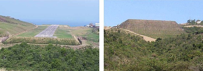 Príkladom takejto konštrukcie je napríklad rozšírenie pristávacej dráhy na ostrove Montserrat v Karibskom mori pomocou vystuženého svahu s výškou až 31,5 m v sklone 45°, ktorý môžete vidieť na nasledujúcom obrázku.