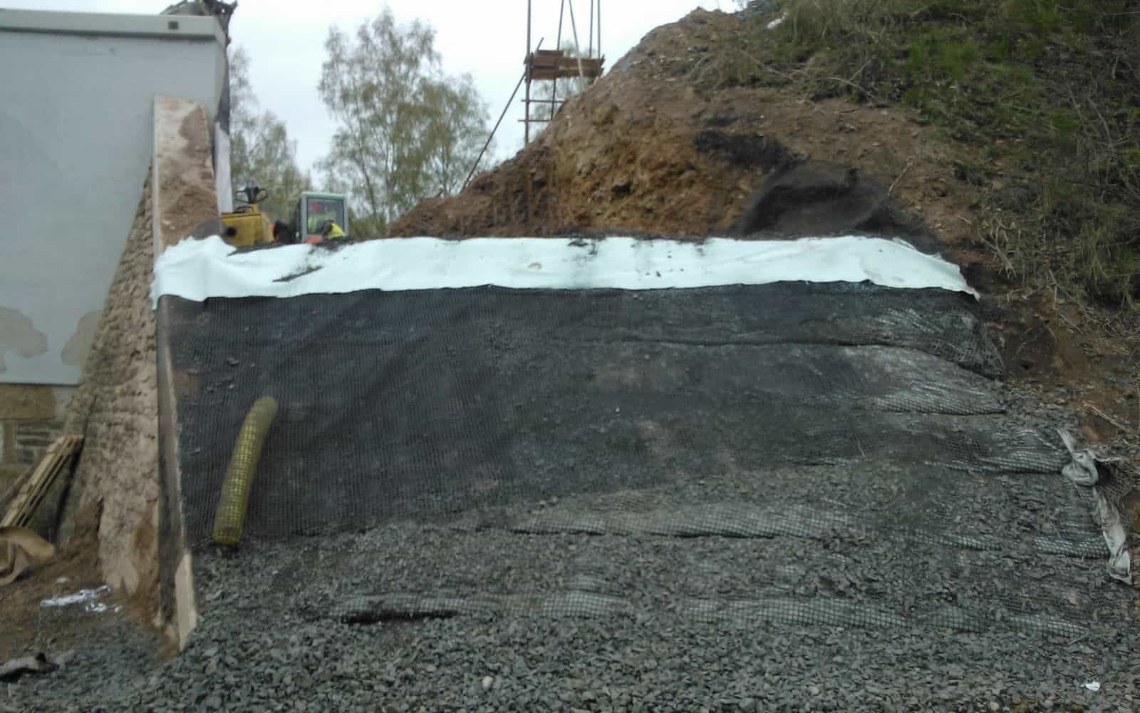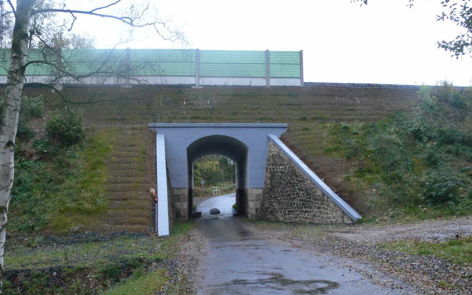 Vyztuženie násypov nad mostnou konštrukciou na trati Planá – Cheb