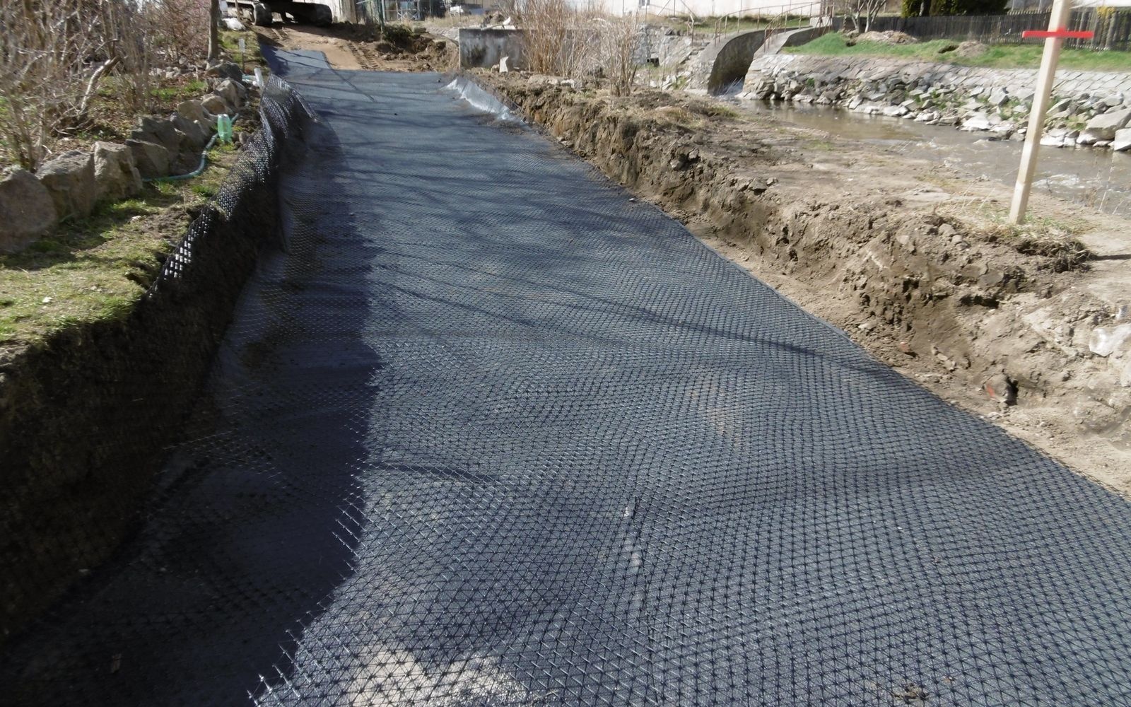 Při projektování cyklostezky spojující ulice Mlýnskou a Helenínskou v Jihlavě bylo potřeba v úseku mezi korytem řeky Jihlavy a soukromým pozemkem vyřešit zajištění stability svahu.