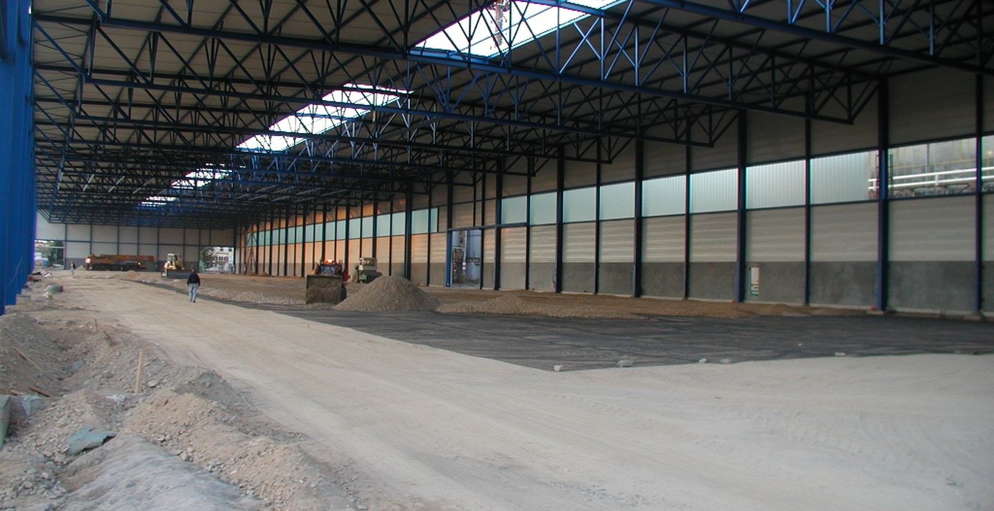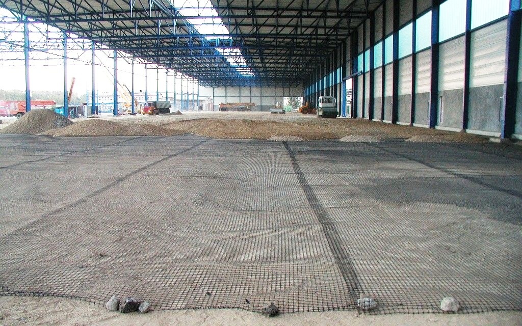 V priemyselných objektoch pôsobí vysoké hodnoty zaťaženia aj na podlahy. Aby v tomto prípade dokázali plánovanému zaťaženia odolávať a neničili sa, bolo nutné plošne spevniť podložie. Použili sa výstužné geomreže a kvalitné štrkodrvine, optimálne zhutnená.